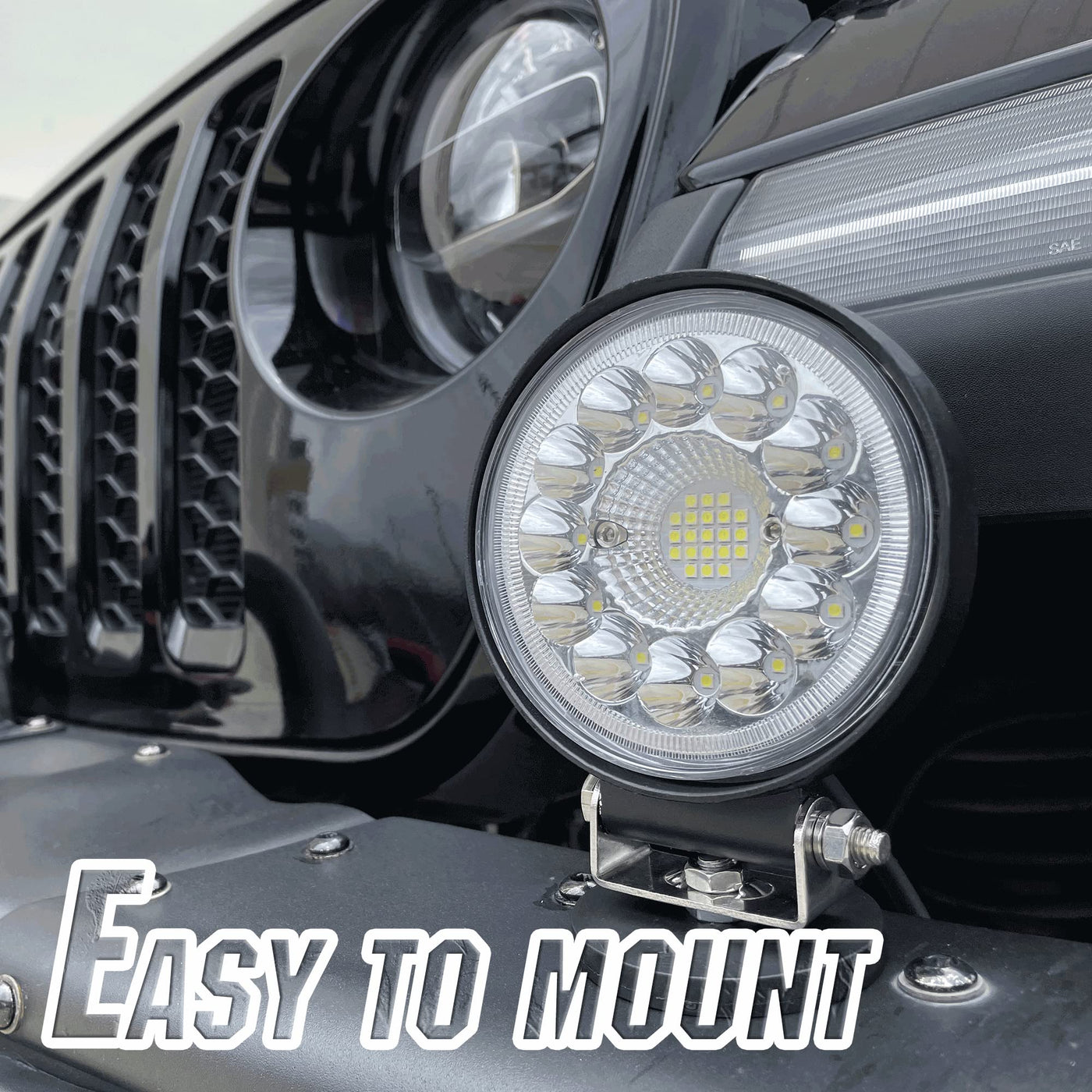 4.5 inch round led light bar, with 150° flood + 30° spotlight for super bright working night. Besides, it can be widely use as round led offroad lights, round fog lights, led work light for truck, led off road lights, led flood lights 12v, led vehicle lights, led driving lights, led tractor lights, led fog light for truck, round led fog lights and etc. It fits for utility four marine suv golf cart forklift pickup truck lawn mower construction motorcycle RZR trailer dirt bike.