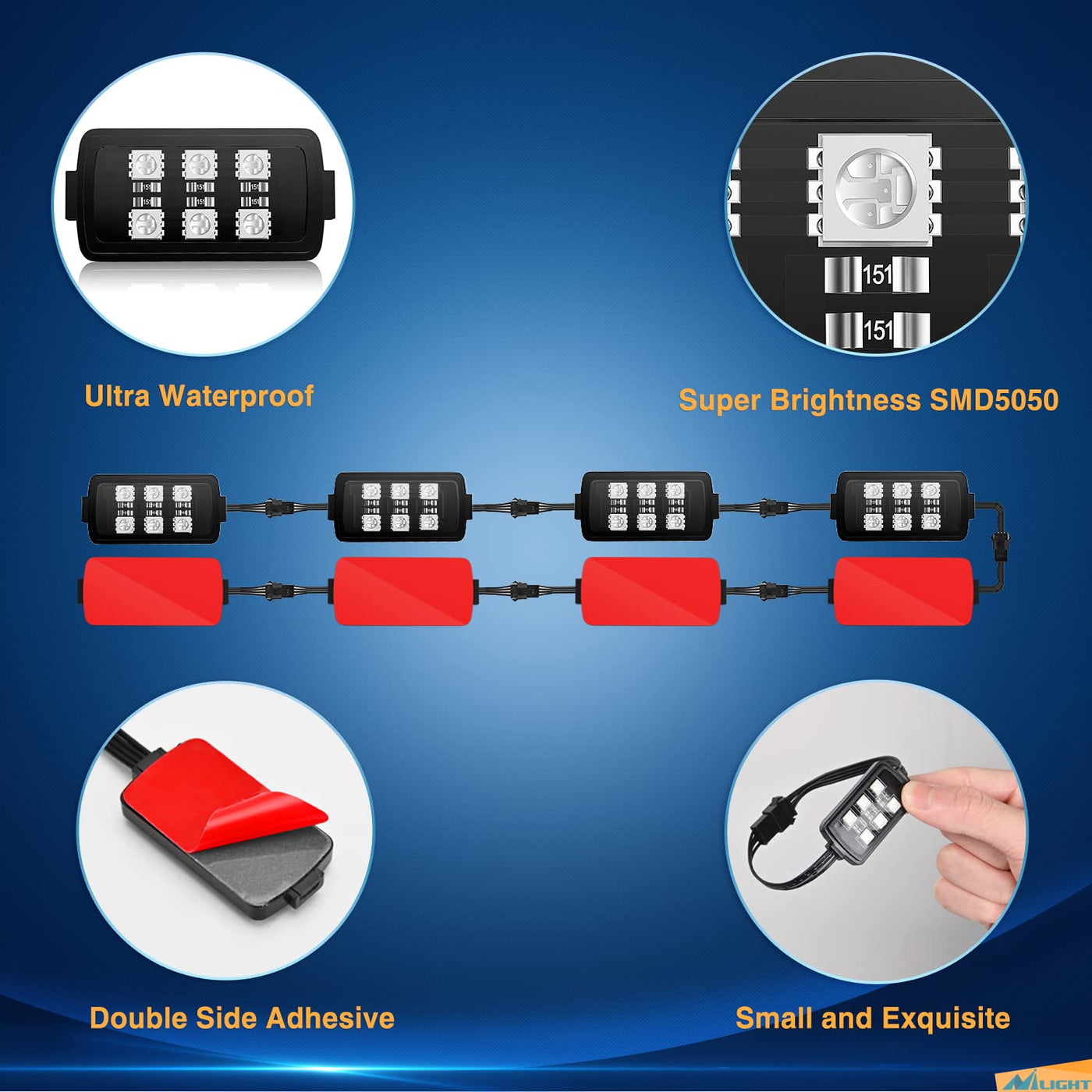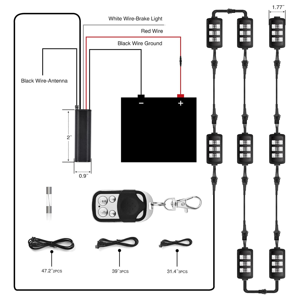 Specification: High Quality 8pcs Motorcycle RGB LED Strip Lights, PVC rubber material, Waterproof, Brake light function,4 Key wireless RF control, change the color as you wish. Easy to install,gorgeous colors, dazzling night, charming motorcycles.