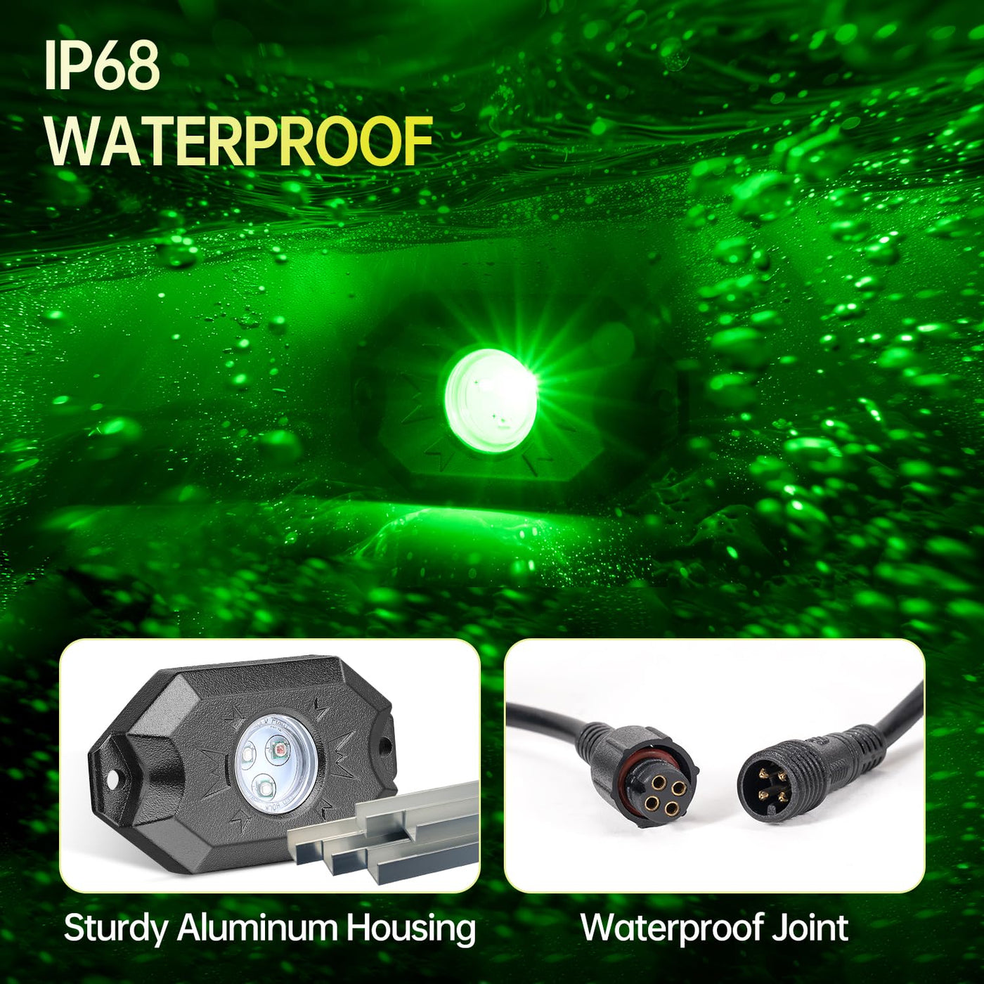 This RGB LED Rock Lights kit is designed to provide lighting for car wheel wells, under chassis, truck bed, ATV, UTV, trailer, and so on. It is made of durable material and has a waterproof rating of IP67, making it suitable for all weather conditions. The lights come with a wireless control box and can be easily installed using the supplied 3M adhesive tape. With a variety of colors and lighting effects to choose from, you can create your unique lighting show. The lights are also controllable via an app, allowing you to customize the lighting effects and timing according to your preferences.