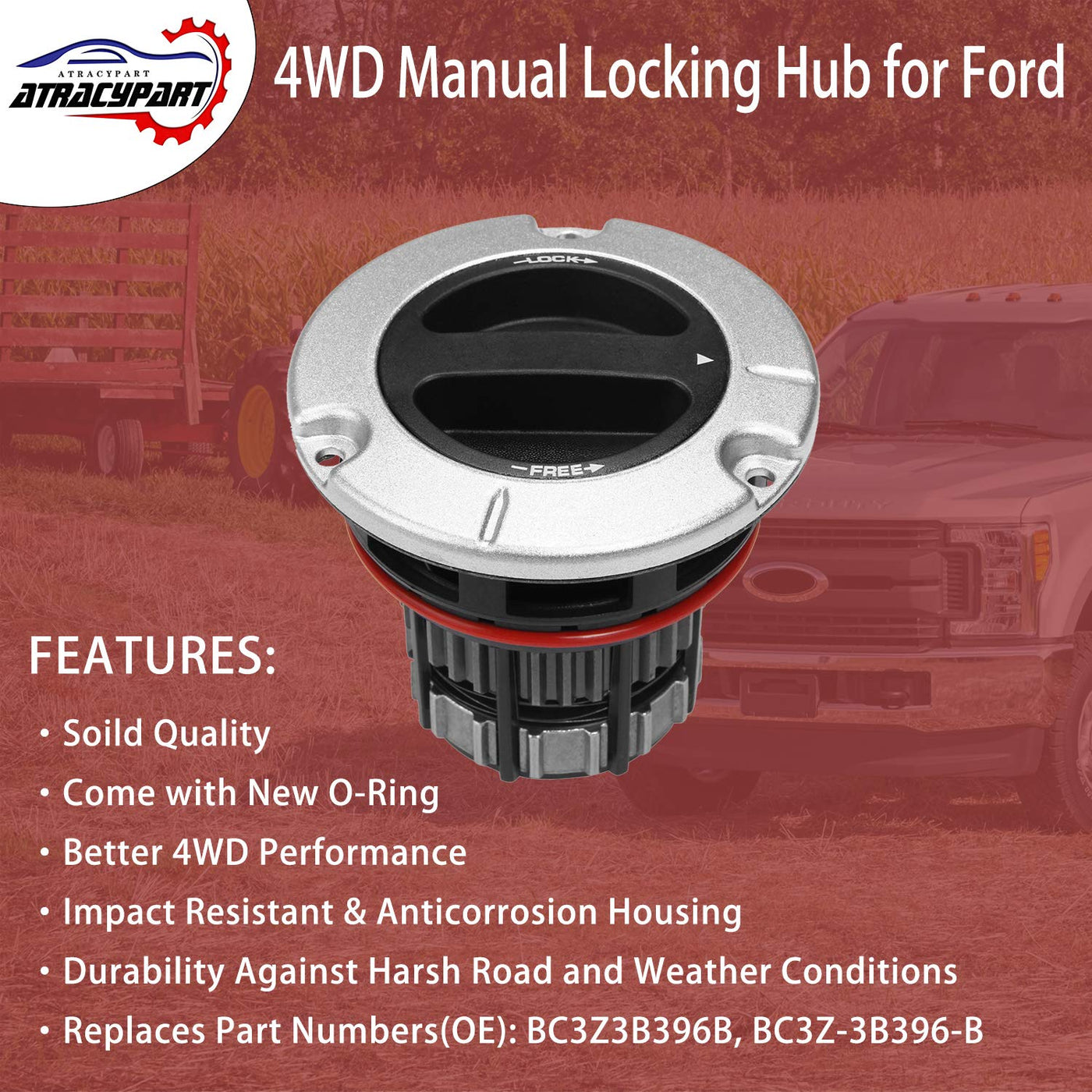 Are you looking to replace your manual locking hubs? If you're knee deep in mud with a failed locking hub and a disabled vehicle, the only way to repair it is to replace it. Factory hub locks have a history of failing when you need them most. Now ATRACYPART has you covered. Our hub is manufactured to the highest production standards which is made of reinforce material, features high impact resistance and better durability. Fits the Following Vehicles: 2005-2023 Ford F-250 Super Duty 2005-2023 Ford F-350 Super Duty 2005-2023 Ford F-450 Super Duty 2005-2023 Ford F-550 Super Duty Replaces Part Numbers: BC3Z3B396B, BC3Z-3B396-B Quality Guarantee: 12-Month Warranty At ATRACYPART, we take pride in the quality of our products and in your satisfaction. If you have any problems, do not hesitate to contact us.