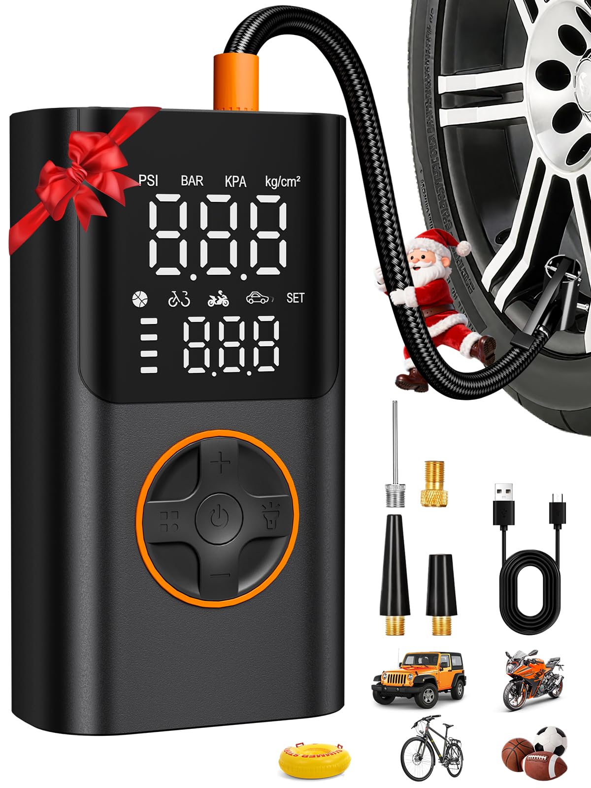 AIRSURE Portable Tire Inflator - Compact Power, Anywhere You Ride AIRSURE delivers fast, accurate inflation up to 150PSI-perfect for all types of bikes, including road, mountain, commuter, and e-bikes. Compact and lightweight, it fits easily into your backpack or saddle bag, ready whenever you need it. With a digital pressure gauge, auto shut-off, and multiple valve adapters, its designed for cyclists but versatile enough for car tires, motorcycles, balls, and inflatables. Plus, the built-in USB output lets you charge your device on the go. Wherever you ride or drive, AIRSURE keeps you moving.