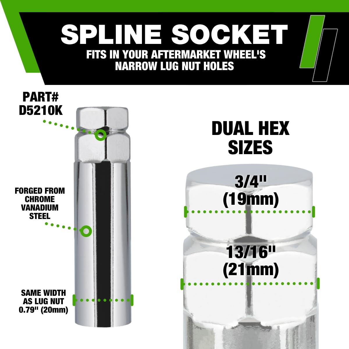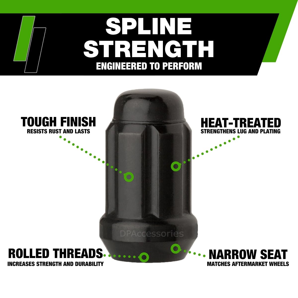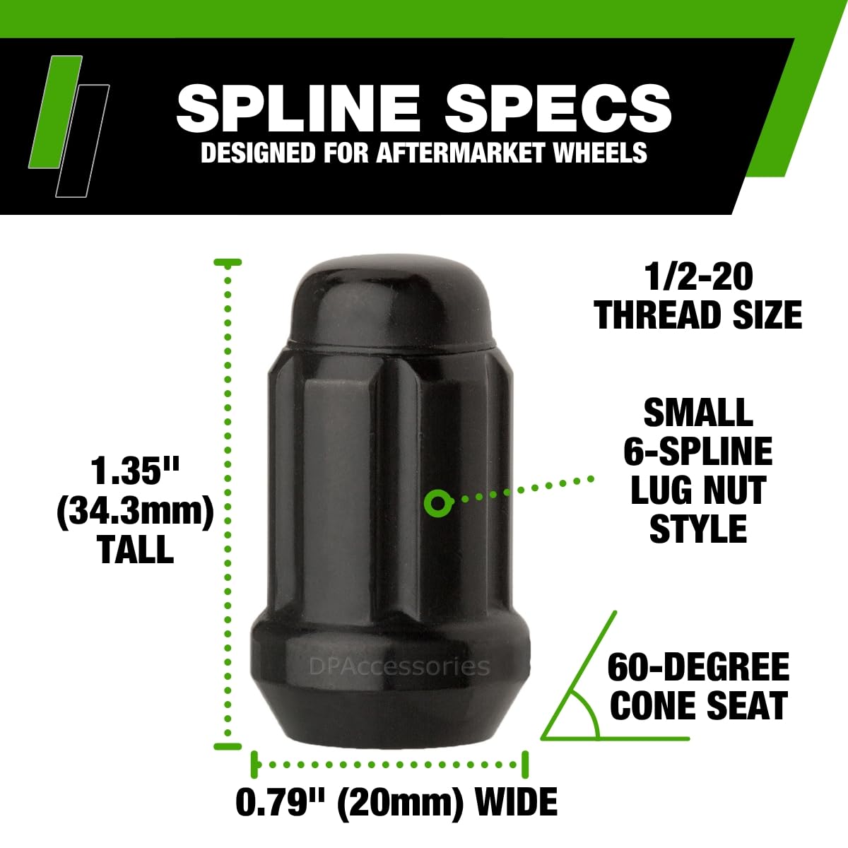 DPAccessories Black Spline Lug Nuts - 1/2-20 Lug Nuts Black for Aftermarket Wheels - Spline Tuner Lugs 1/2x20 - Set of 20 Black Lug Nuts and One Spline Lug Nut Socket - D5242P-2308/20