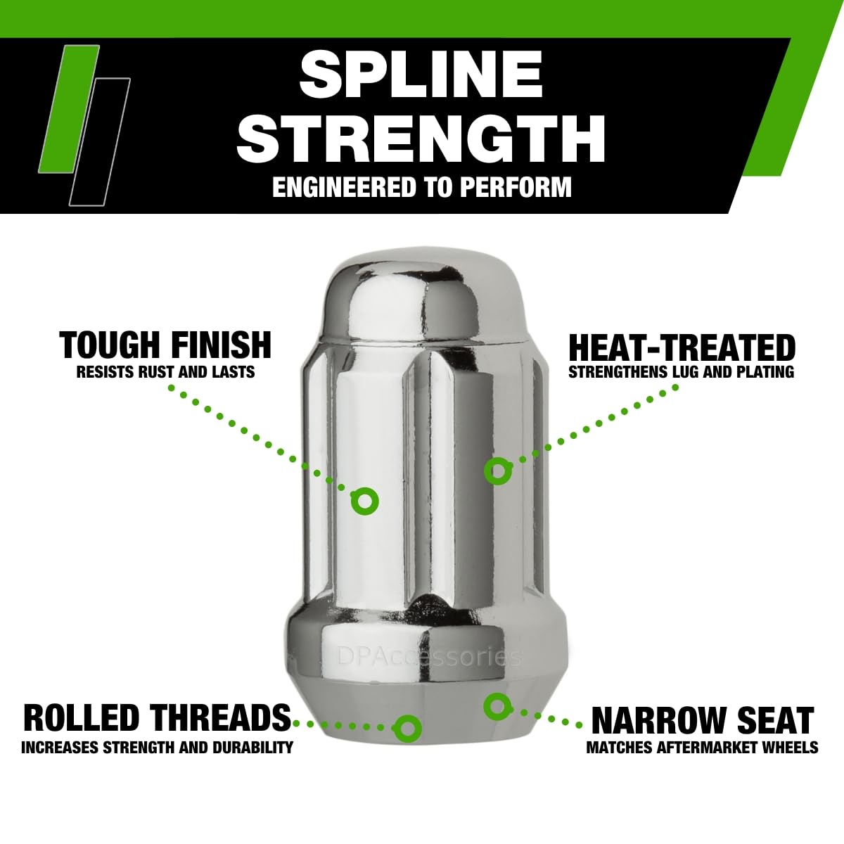 DPAccessories Chrome Spline Lug Nuts - M12x1.25 for Aftermarket Wheels - Set of 24 with Spline Socket - Durable & Stylish