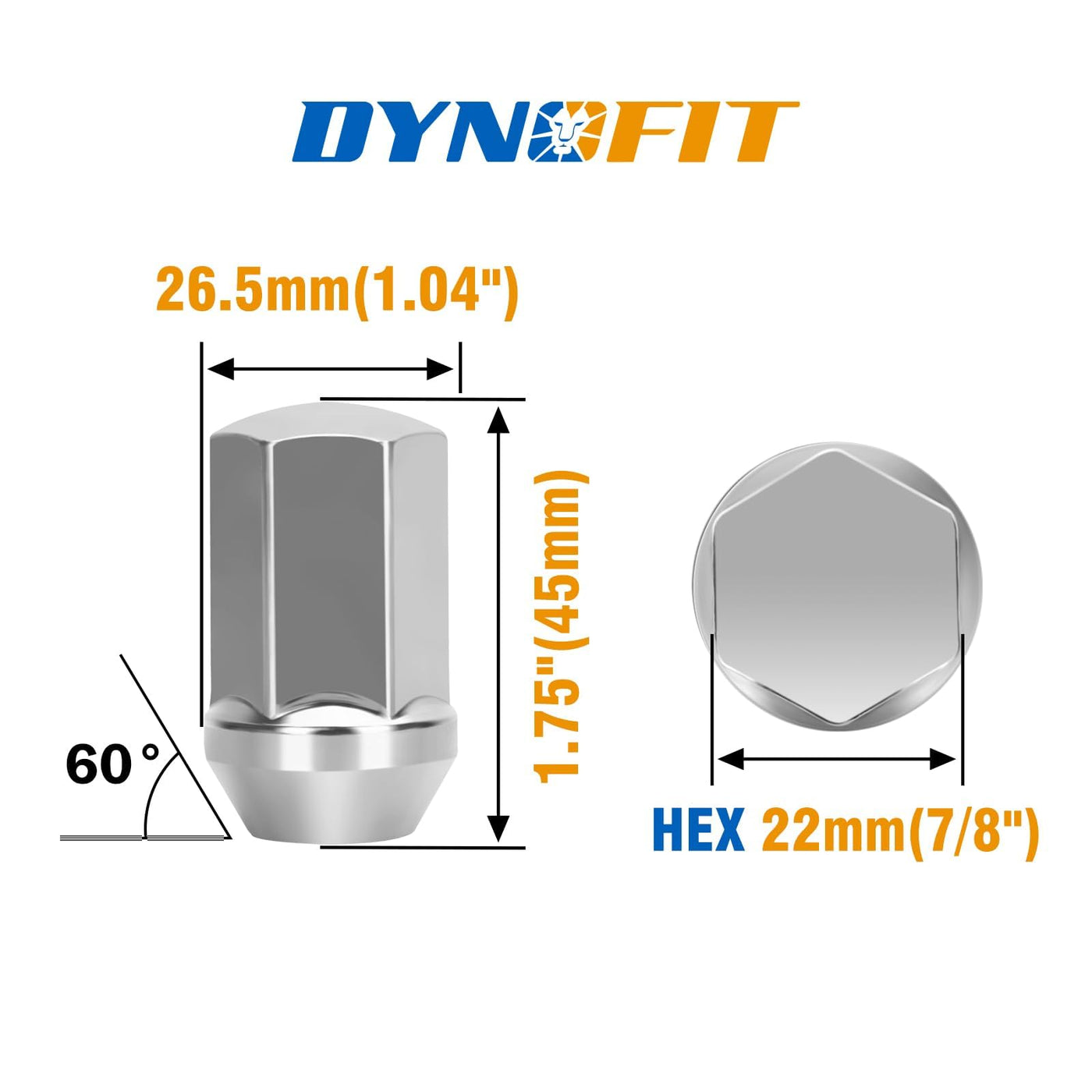 dynofit 24pcs 14x1.5 OEM Lug Nuts 1.75 inch(45mm) Height 7/8' Hex(22mm), M14-1.5 One-Piece Design Factory Chrome Wheel Lugnuts for Silverado & Tahoe GMC Sierra 1500 Buick Dodge Cadillac Chrysler