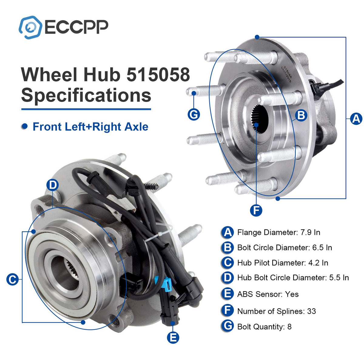 ECCPP 515058 Front Wheel Bearing and Hub Assembly fit for Chevrolet Silverado 1500 HD 2500 HD Tahoe GMC Sierra 1500 HD 2500 HD Y