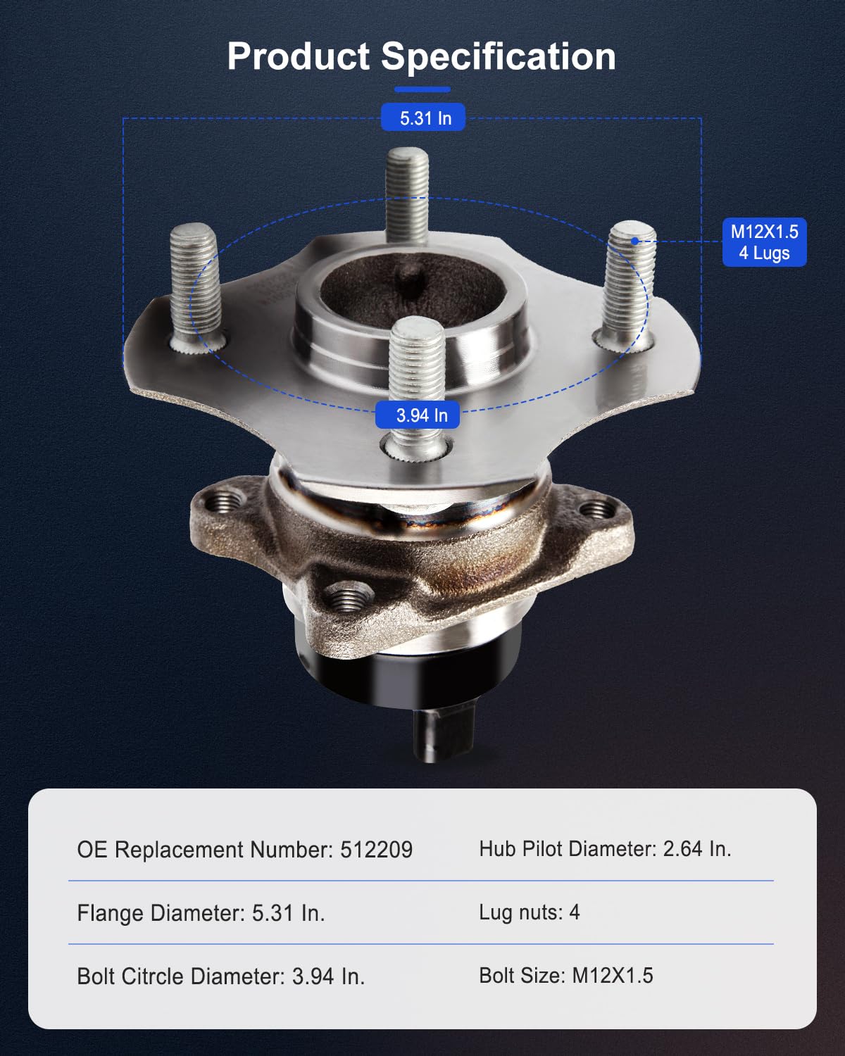 ECCPP Rear 4 Lugs Wheel Bearing and Hub Assembly For 2004-2006 For Scion xB 2000-2005 For Toyota Echo Wheel Hub Bearings W/ABS 5