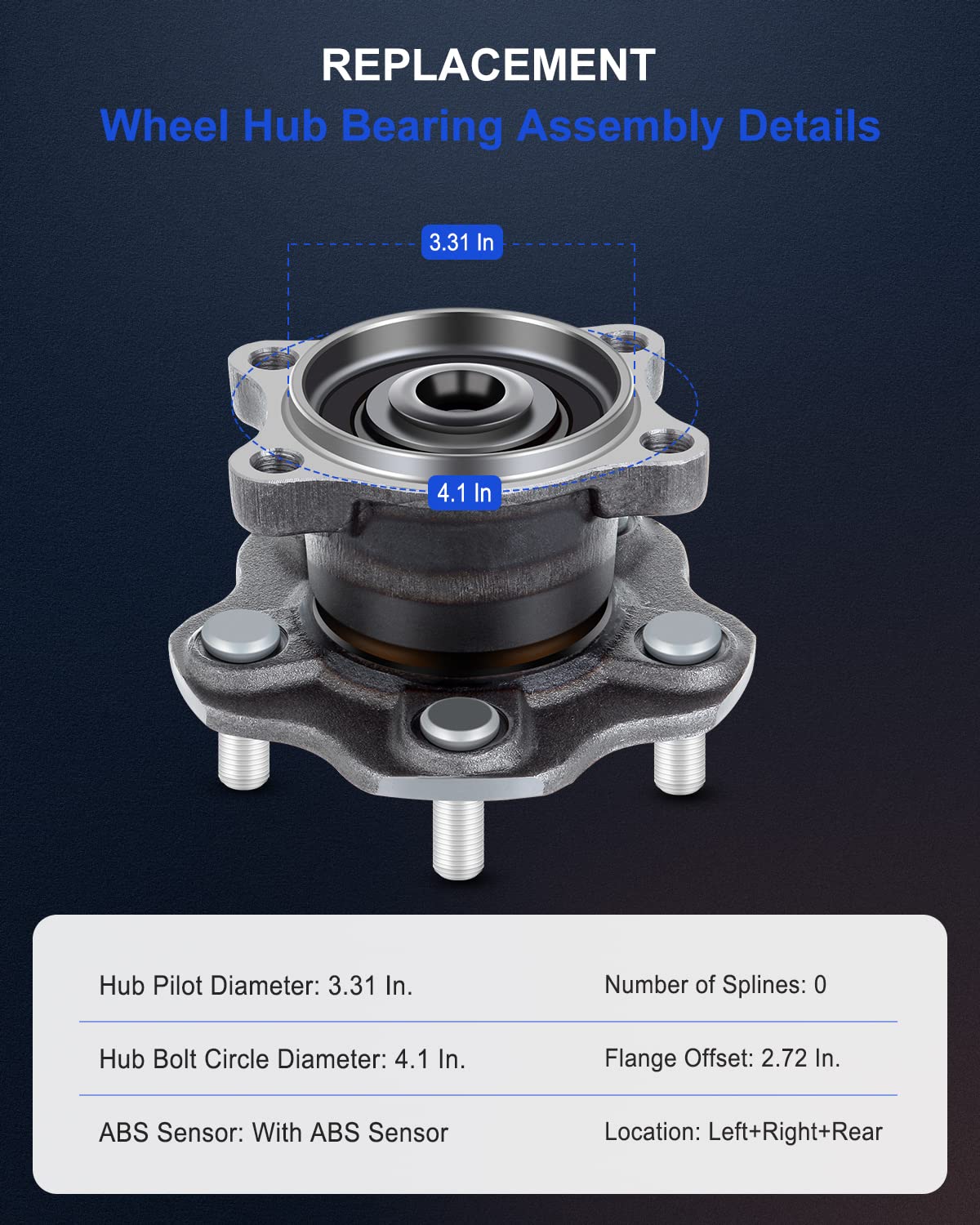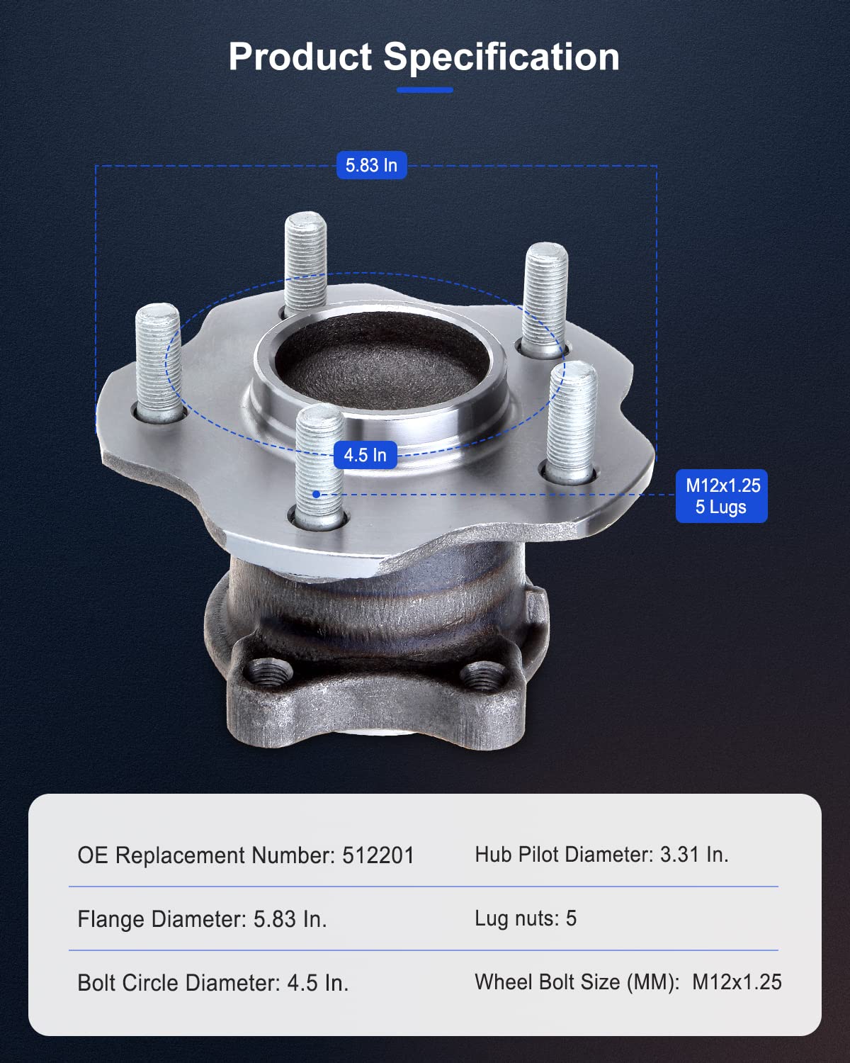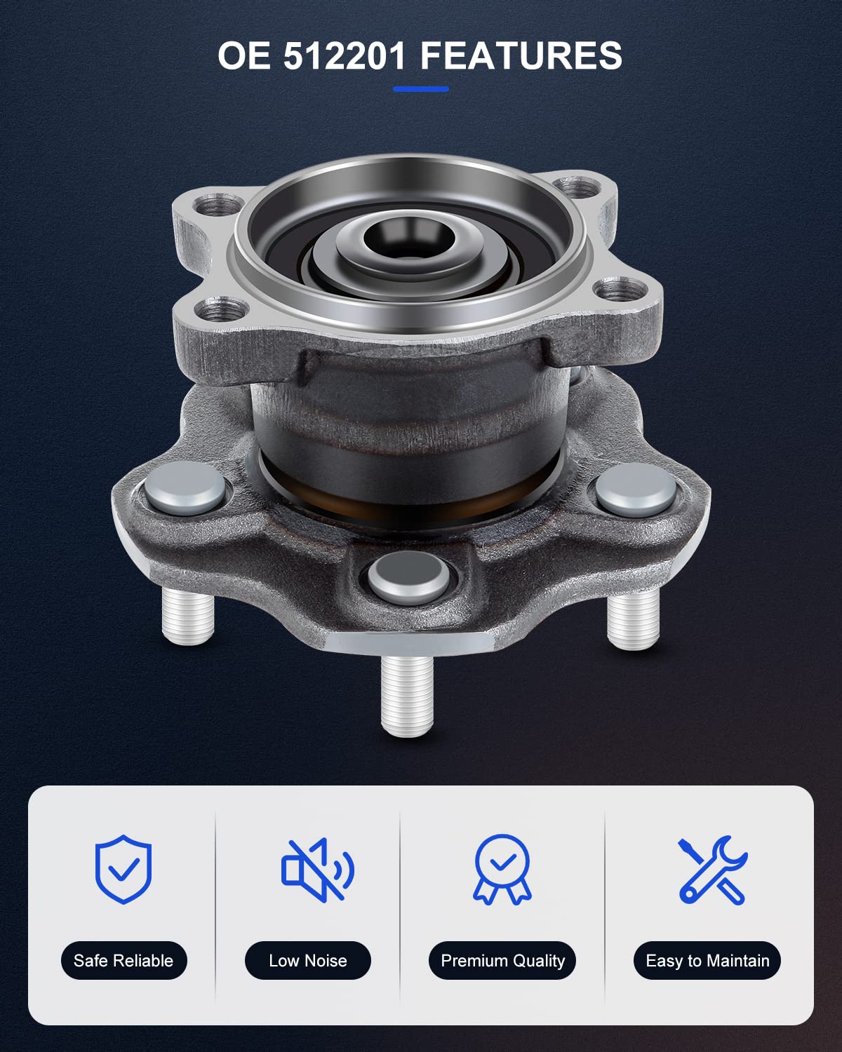 ECCPP Rear Wheel Hub and Bearing Assembly 512201 fit for 2002-2006 Nissan Altima Quest Maxima Replacement for 5 Lugs with ABS 4