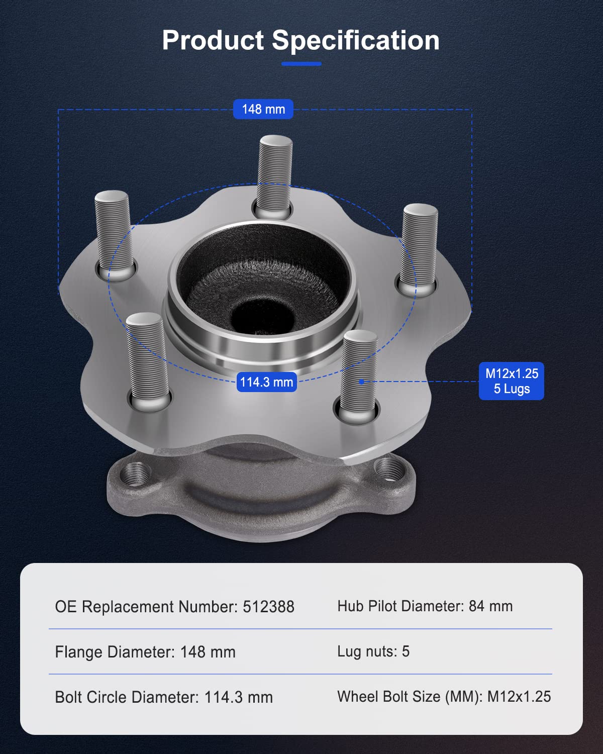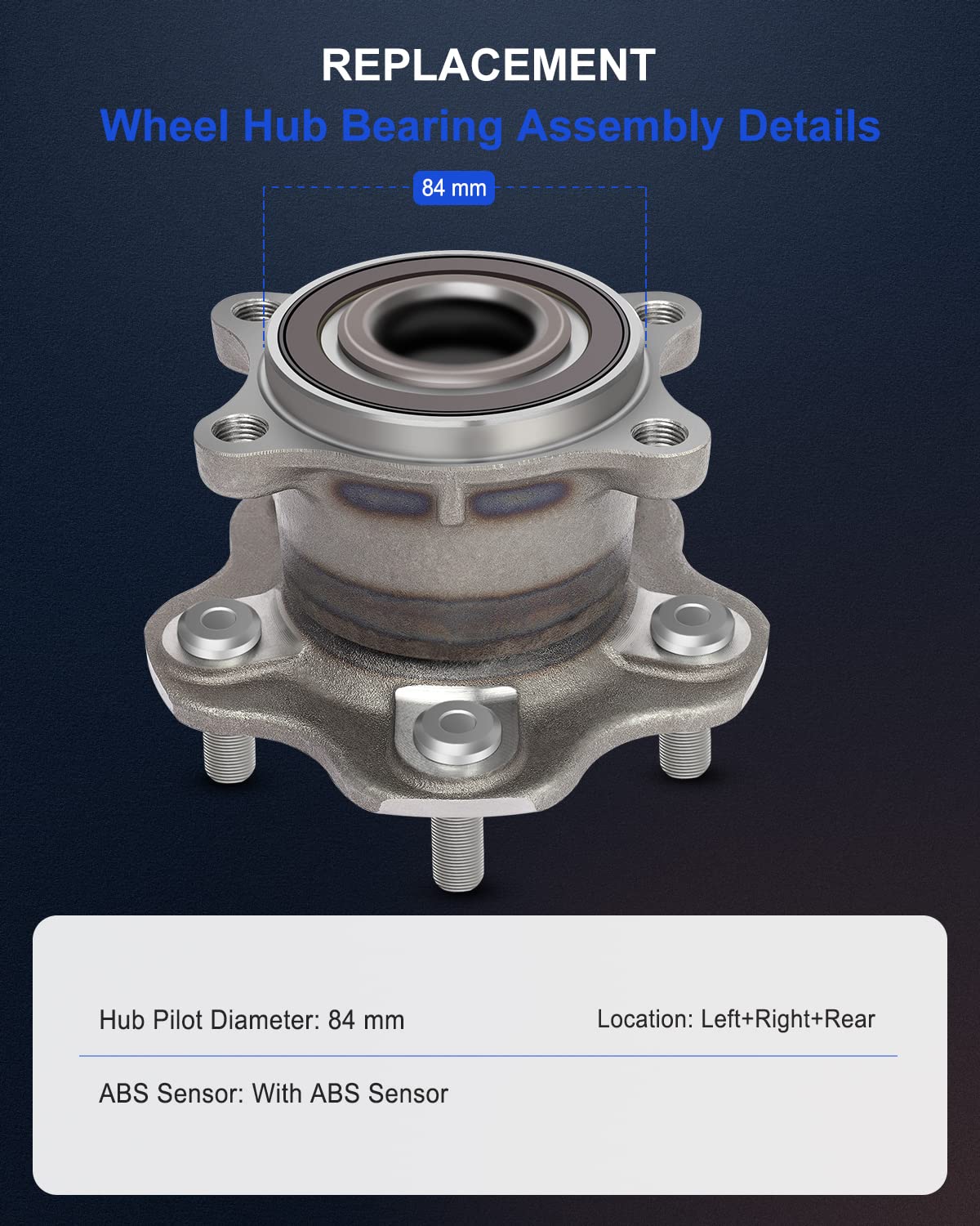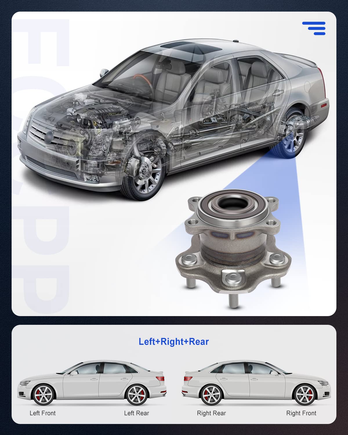 BRAND STORY ECCPP, one of the largest automotive aftermarket parts suppliers online in America, serving professional installers and do-it-yourself customers. Our mission is that brings premium quality automotive accessories to every corner of the world. We aim to provide each customer the best quality auto parts at the best purchasing. Our high-quality products and professional services are looking forward to becoming the first choice for your reliable branded wheel bearing spare parts. Wheel Hub Bearing With Wheel Hub Studs Compatible: 2013 for Infiniti Jx35 2014-2016 for Infiniti Qx60 2011 for Mitsubishi Rvr 2007-2016 Altima 2015 Murano Package Including 1 wheel bearing hub pack in a box