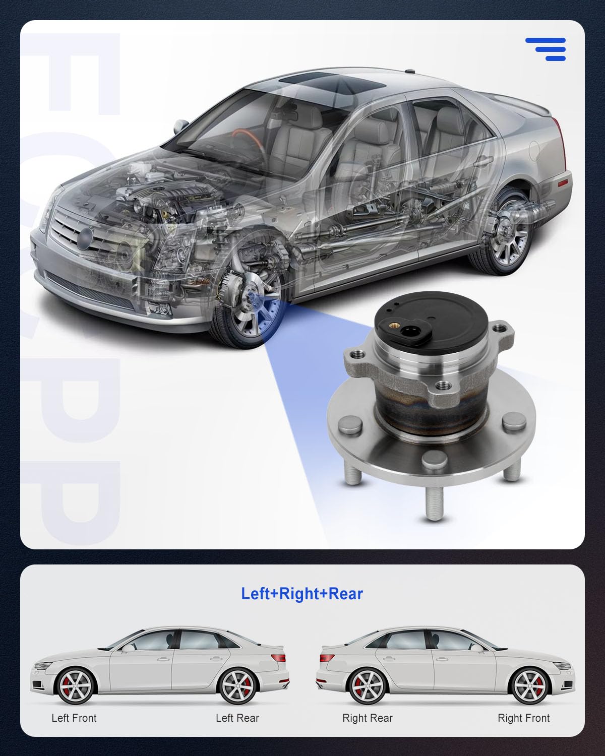BRAND STORYECCPP,one of the largest automotive aftermarket parts suppliers online in America, serving professional installers and do-it-yourselfcustomers. Our mission is that bringshigh quality automotive accessories to every corner of the world. We aim to provide each customer the best quality auto parts at the best purchasing. Our high-quality products and professional services are looking forward to becoming the first choice For your reliable branded wheel bearing spare parts.Wheel Hub Bearing With Wheel Hub Studs Compatible:2010-2013 for Kia Forte Rear; FWD 2010-2013 for Kia Forte Koup Rear; FWDPackage Including2 wheel bearing hub pack in a box