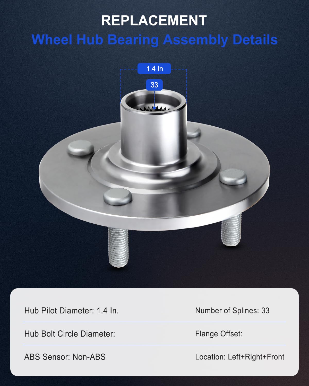 Wheel Hub Bearing Assembly front 4 Lugs, New Premium Bearing and Hub Assembly, for Saturn 1994-2002 518514About ECCPPECCPP, one of the largest automotive aftermarket parts provider online in America, serves both the professional installer and do-it-yourself customers. We manufacture and distribute a full line of high-technology critical components.Compatibility1994-2002 for Saturn SC1994-2002 for Saturn SL1994-2001 for Saturn SWPackaged Included2pcs of wheel hub bearing assembly For your another optionIf you needs more wheel hub bearing, please search ''ECCPP Wheel Hub Bearing''