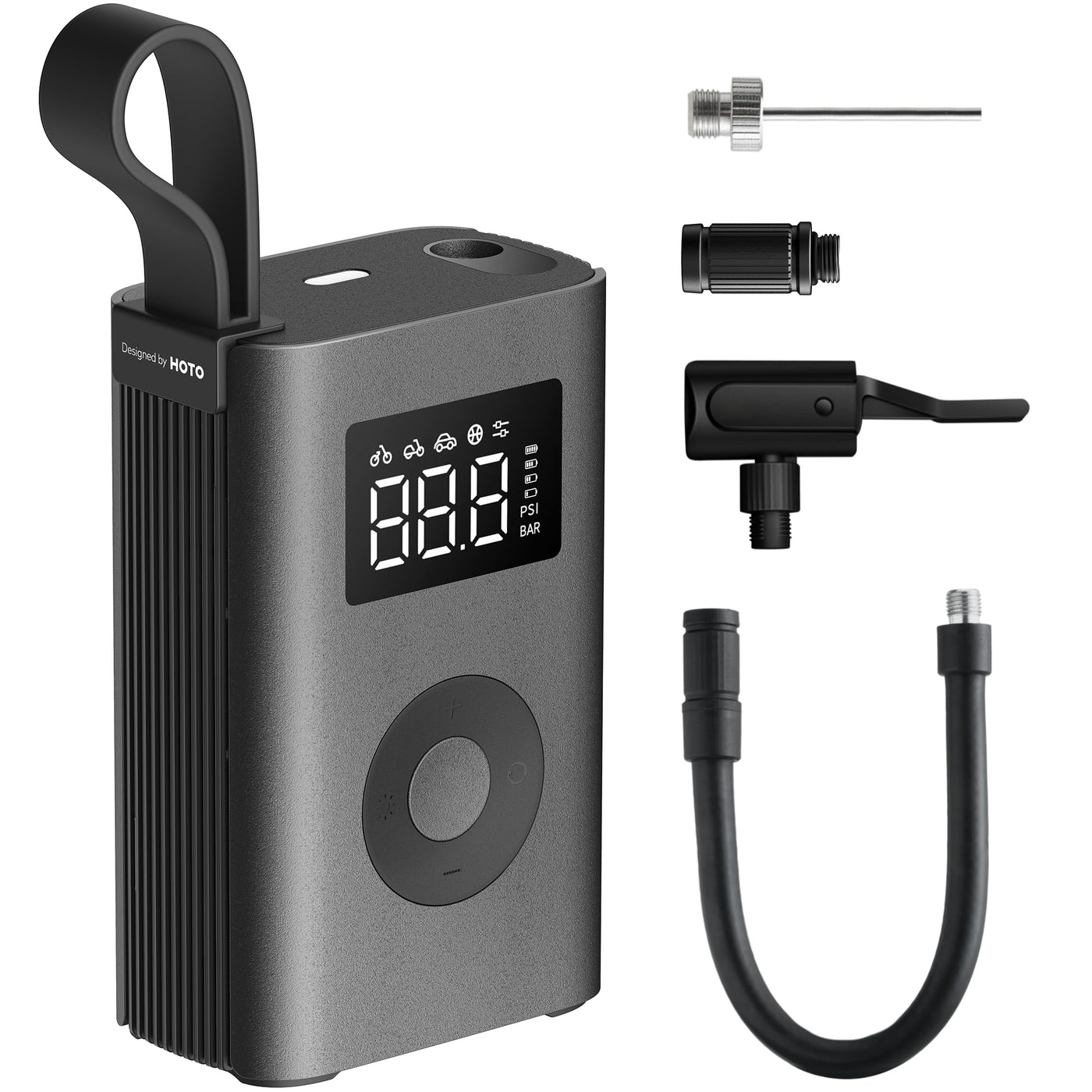 HOTO Air Pump ADV, Tire Inflator Portable Air Compressor with Digital Pressure Gauge 150PSI, Electric Tire Pump with 2*2000 mAh