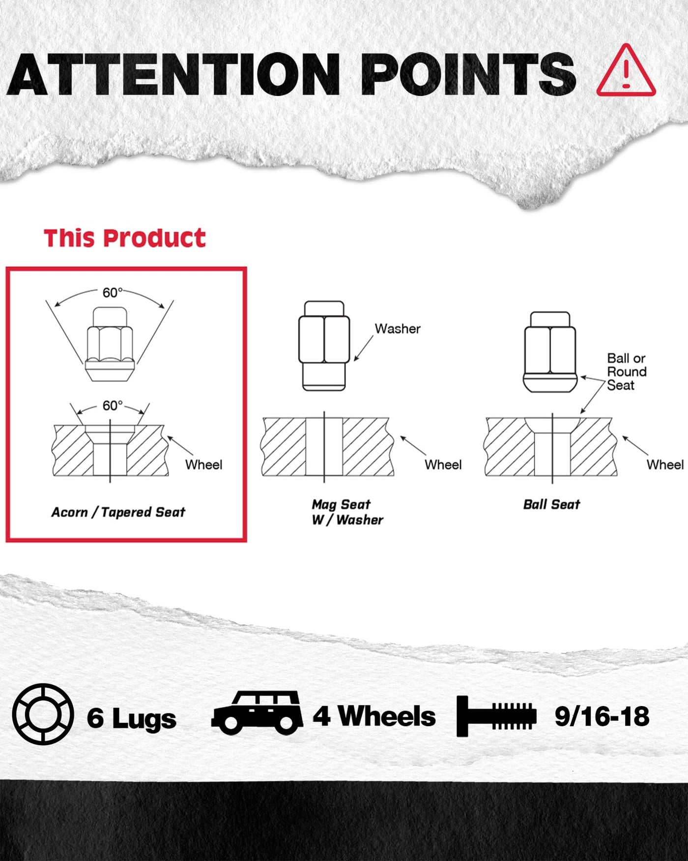 -All of our Lug Nuts are made of the Highest quality steel. They are secured with a 60 degree cone seat for snug secure fit. The mirror like finish will stand up to the elements and stay bright and shiny with proper up keep. Please know your receiving some of the HIGHEST QUALITY product the market has to offer, BUY WITH CONFIDENCE!