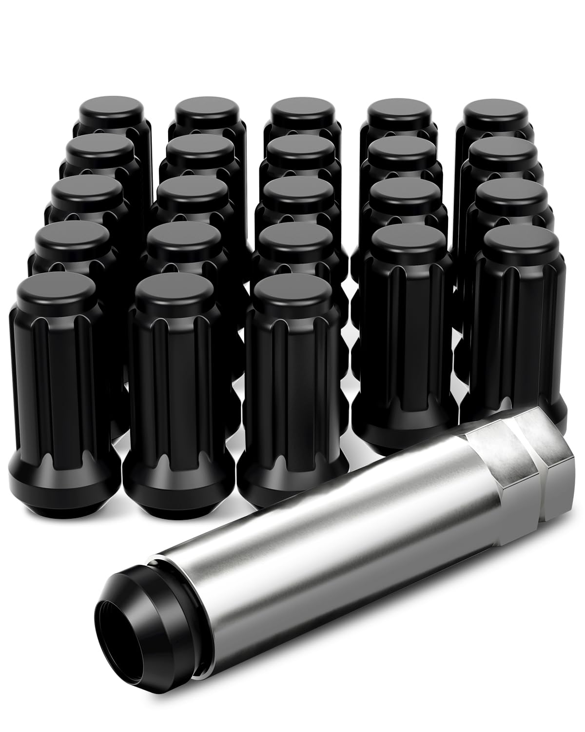 M14x1.5 Lug Nuts Black with Spline Tuner, XL 2 inches Length Conical Aftermarket Wheel Nut, Compatible with Chevy GMC Ford Cadillac Lincoln SAAB Saturn Silverado 1500 Savana, Set of 24