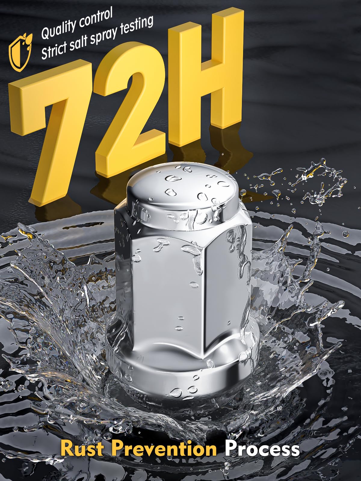 Q: Are these lug nuts resistant to rust and corrosion?A: Yes, MIKKUPPA lug nuts are made from triple chrome, cold forged, and heat-treated steel, making them highly resistant to rust and corrosion. This durability ensures they maintain their strength and appearance over time, even in harsh conditions.