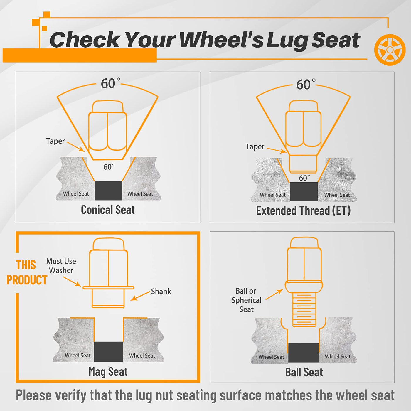 Q: What is included in the package of MIKKUPPA Lug Nuts?A: The package includes 20 high-quality mag seat lug nuts, designed to replace rusted or broken lug nuts while meeting or exceeding OEM standards.