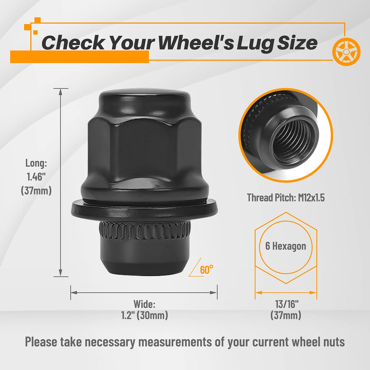 【M12x1.5 Lug Nuts】M12x1.5 Thread - 13/16" (21mm) Hex - 1.46" (37mm) Hight - 1.2" (30mm) Wide - Mag Seat - Closed end Lug Nuts - Color: Black. (NOTE: Please tighten the lug nuts manually, DO NOT use electrical tools). | 【Applicable Models】Replacement for Toyota 4Runner 1984-2019, Toyota Camry 1983-2019, Toyota Tacoma 1995-2019, Toyota Tundra 2000-2017, Toyota Sequoia 2001-2017, Honda Civic 1973-2019 etc. | 【Superb Craftsmanship】This product uses triple chromium plating and basic nickel copper and chromium plating to provide excellent strength and corrosion resistance. Made of cold forged and heat-treated steel, it has reliable strength and durability. | 【Package Included】The product contains 20 high quality mag lug nuts,These lug nuts are manufactured with the highest quality to meet or exceed OEM Standards, perfect for replacing rusted and/or broken lug nuts. | 【After-sale Guarantee】If you are not satisfied with this product or if you have any question, please feel free to contact us. MIKKUPPA promise a 1-year warranty and 100% free exchange if product is defective.