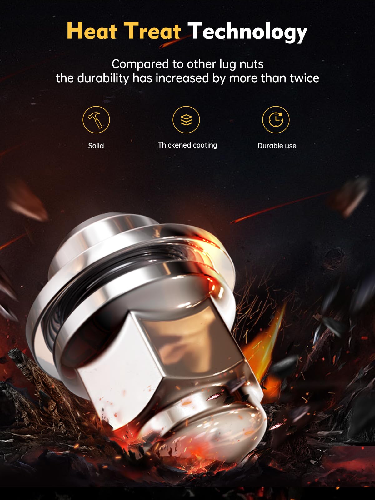 Q: What materials are MIKKUPPA lug nuts made from?A: MIKKUPPA lug nuts are made from cold forged and heat-treated steel, featuring triple chromium plating for enhanced strength and corrosion resistance.