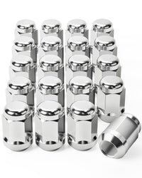 Q: What is the size and specifications of these lug nuts?A: Each lug nut has a size specification of 1/2"-20 with a 60° conical seat. The dimensions of each lug nut are 1.38 inches high and 0.87 inches wide, making them suitable for various applications.
