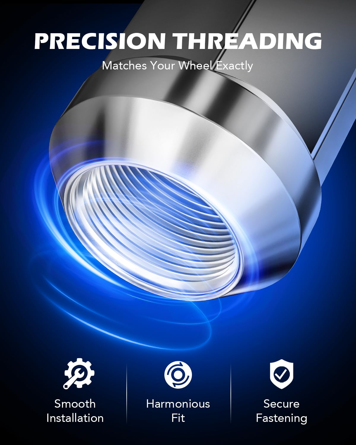 Q: What vehicles are compatible with Orion Motor Tech 1/2"-20 lug nuts?A: Orion Motor Tech 1/2"-20 lug nuts are compatible with a wide range of vehicles, including popular models such as the Ford Mustang, Explorer, F-150, Dodge Ram 1500, and Jeep Wrangler. They are designed to fit any vehicle that requires a 1/2"-20 lug nut with a 60° conical seat.
