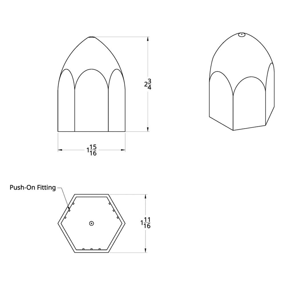 United Pacific 10047 Wheel Lug Nut Cover Set, 1-1/2" x 2-3/4", Chrome, Plastic, Bullets, Push-On Style