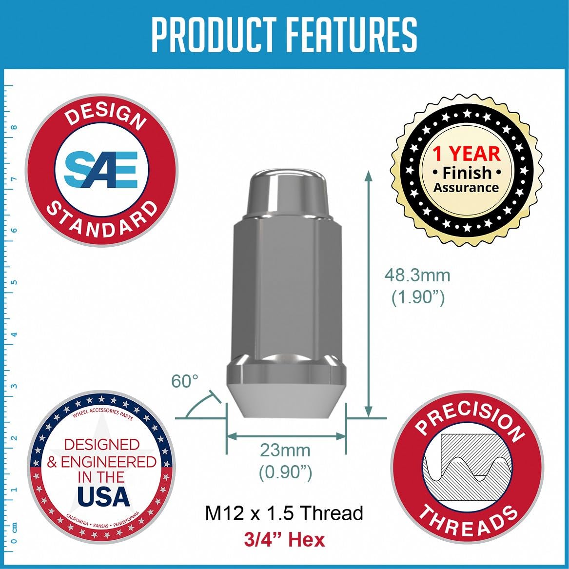 Wheel Accessories Parts 20 Pcs M12 x 1.5 12 x 1.5 Thread Bulge Acorn 1.90" Long Lug Nuts Chrome 3/4" 19mm Hex Fits 1995-2005 Chevy Blazer GMC Jimmy 2000 to 2006 Toyota Tacoma
