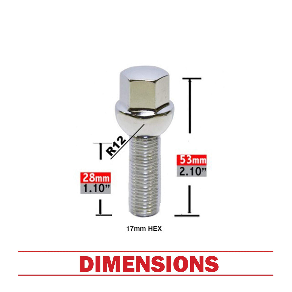 Wheel Accessories Parts Set Of 20 Chrome 14X1.5 Lug Bolts Ball Seat (R12) 28Mm Shank Length, M14 1.5 Thread, 17Mm Hex Wheel Lug Bolts With Dual Hex Key (20, Chrome, M14X1.5)