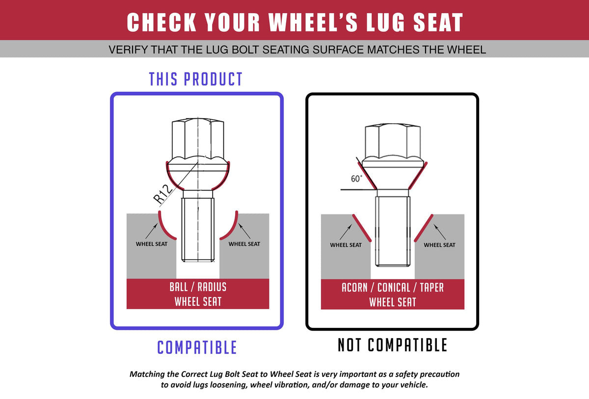 Q: How do I properly install the lug bolts?A: To install the lug bolts, align them with the wheel's lug holes and hand-tighten them initially. Use a torque wrench to securely tighten them to your vehicle's specified torque settings for optimal safety.