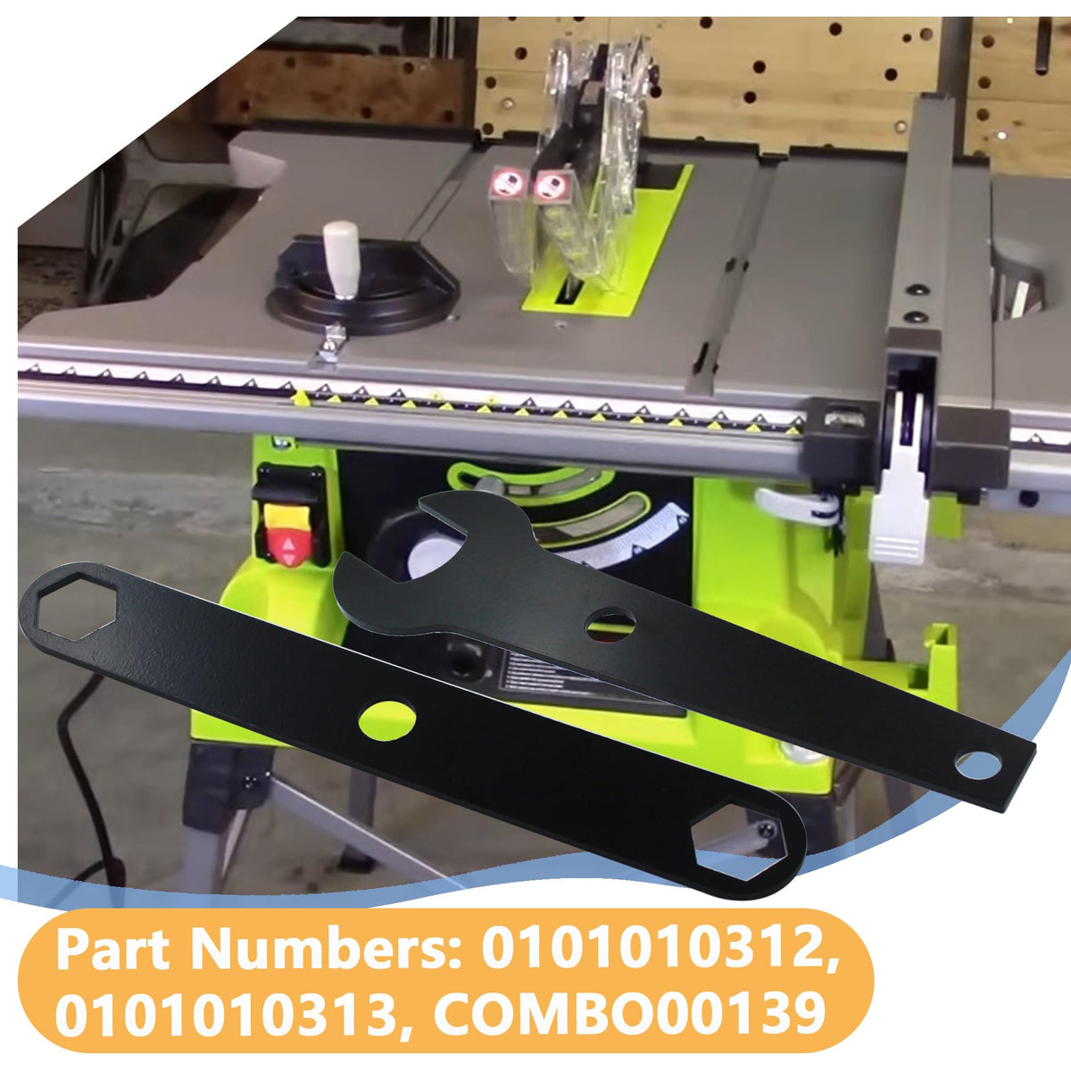 Q: What table saw models are compatible with the 0101010312 0101010313 Table Saw Wrench Set?A: The 0101010312 0101010313 Table Saw Wrench Set is compatible with several Ryobi table saw models, including RTS10, BTS10, BTS10S, BTS12S, RTS21, and COMBO00139.