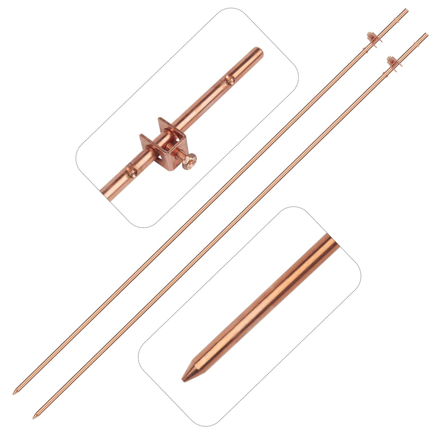 2-Pack Ground Rod 3/8''X4', Grounding Stake, Electrical Fence Antenna Electrode Satellite Dish Tv Aerial Electrical Wire Lightning Rod Grounding Bar Copper Grounding Rod