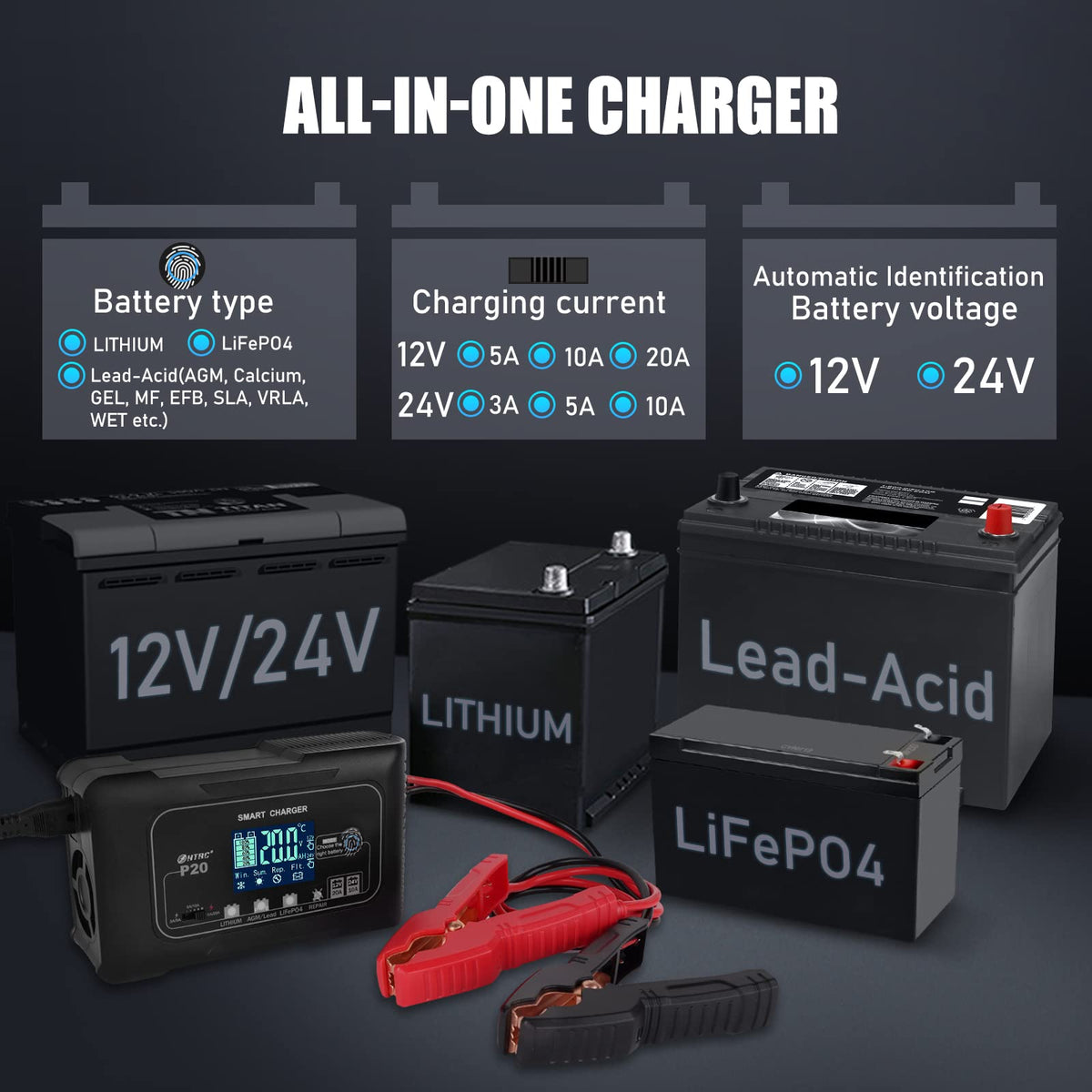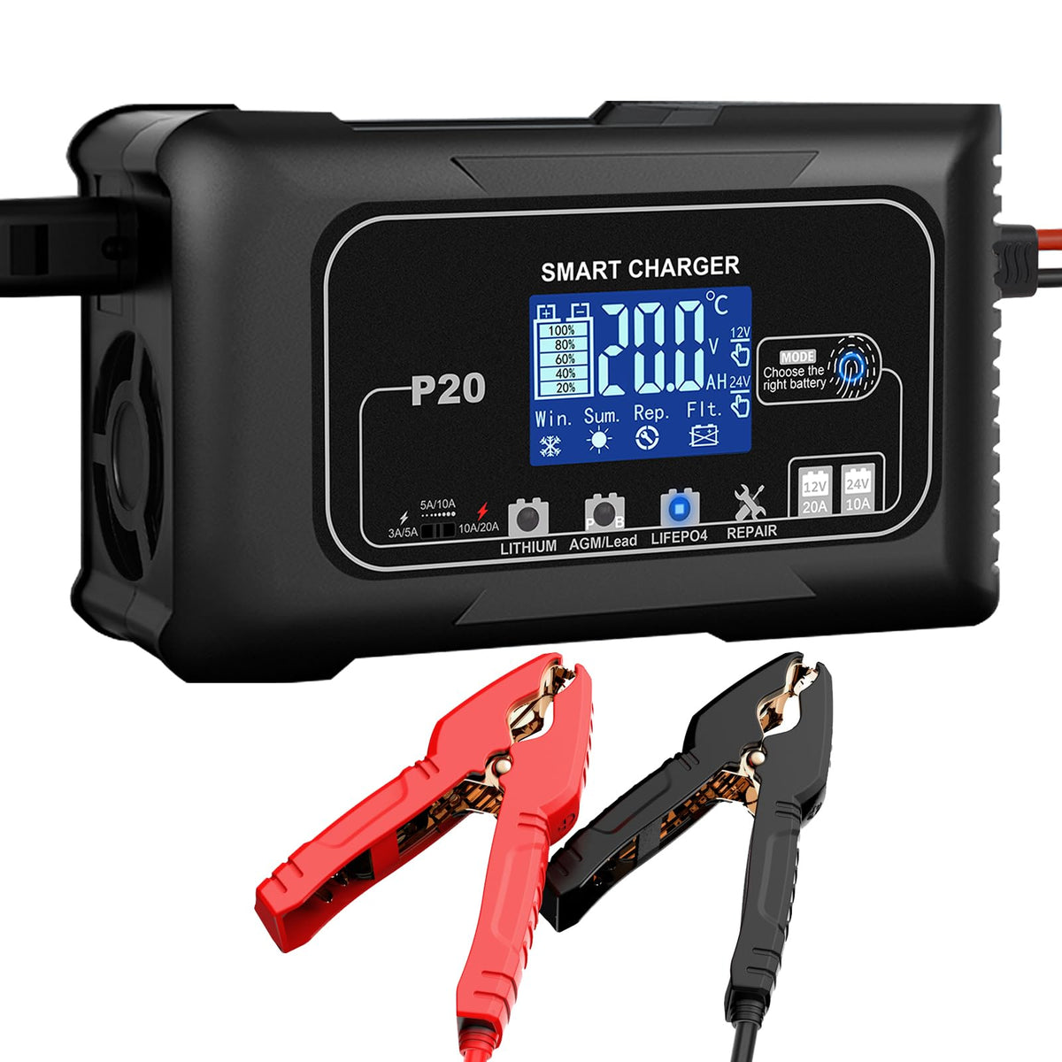 20-Amp Smart Battery Charger,12V/20A And 24V/10A.Lithium,Lifepo4,Lead-Acid(Agm/Gel/Sla..) Car Battery Charger,Trickle Charger, M