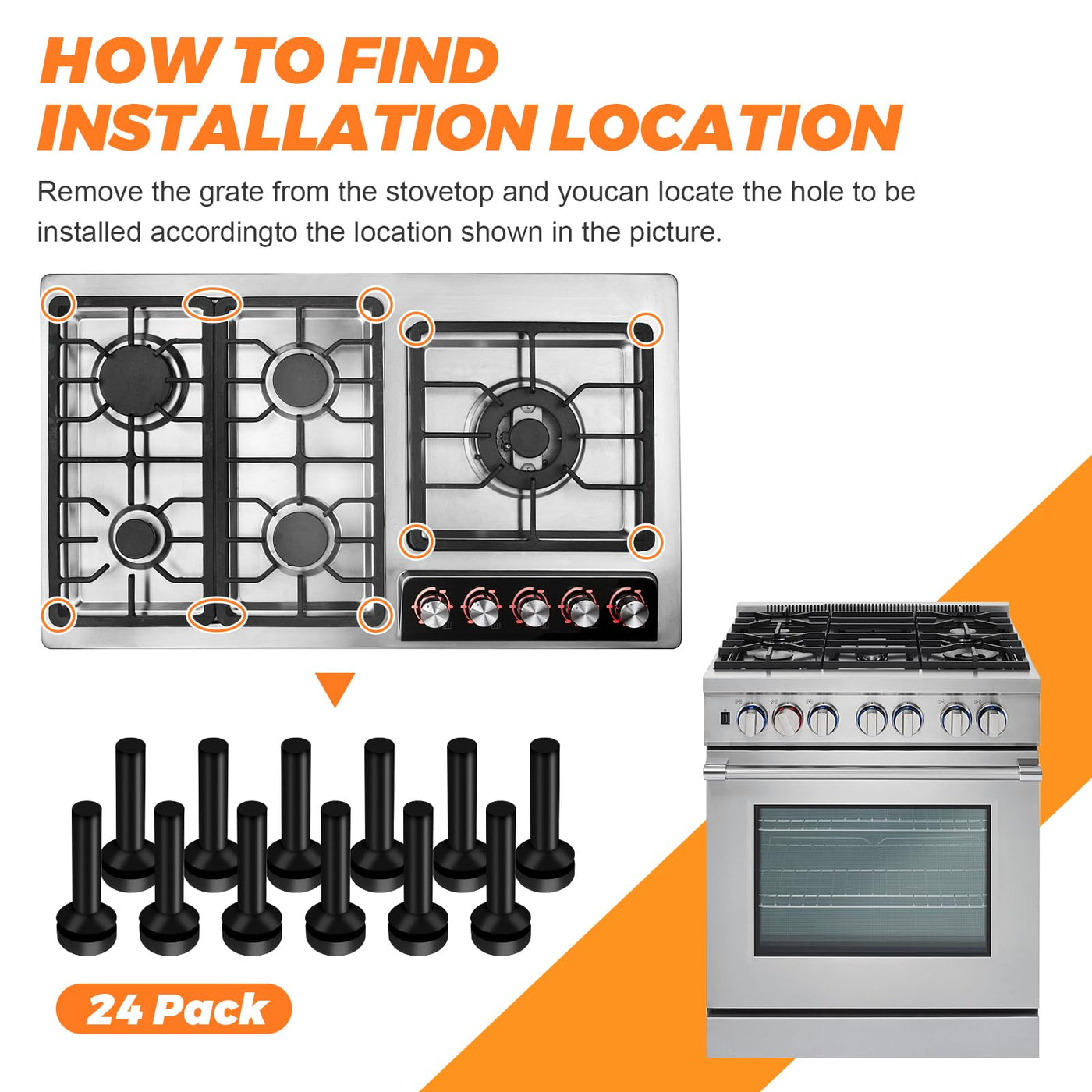 EASY TO INSTALL :You should remove grate from cooktop and turn over it. Next, please take old grate feet out, and clean the grate hole. Finally, place our new GE Stove Parts Rubber Grate Bumpers WB02X24790 in the hole.You can also watch the video online for installation. A simple replacement to help your cooker work perfectly.