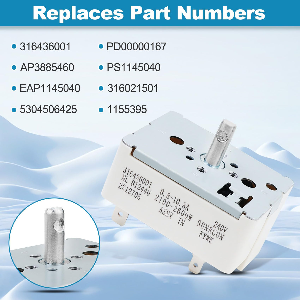 316436001 Surface Burner Control Switch Compatible with Frigidaire, for Kenmore Range Surface Element Control Switch 8 Inch, Replace for Model: 316436001 316021501 AP3885460 ps1145040 ea1145040 ah1145040
