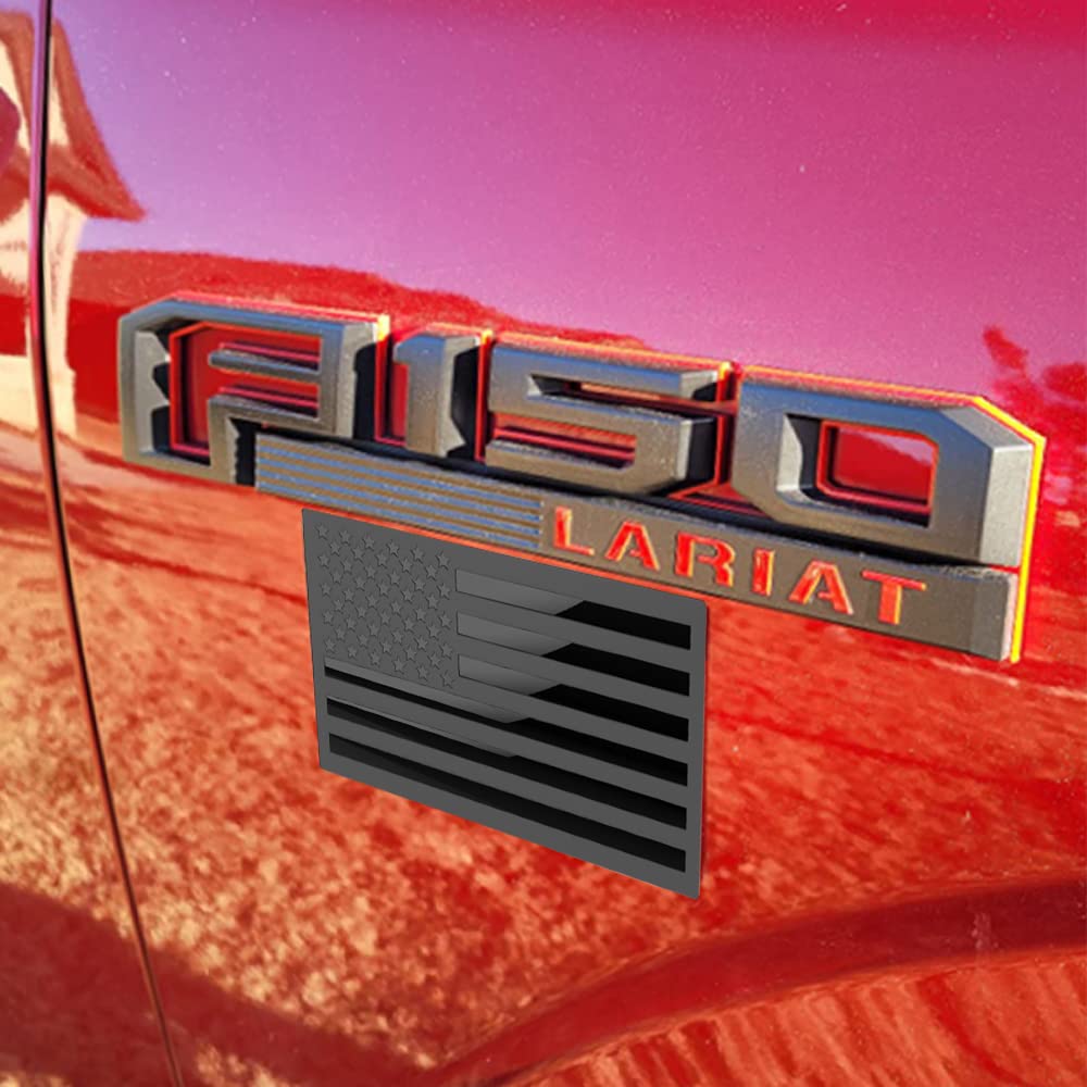 3D Metal American Flag Emblem Decal,Black American Flag Decal,For Car, Truck Or Suv,5"X3"(Matte Black ,Three Usa Regular Orientation)