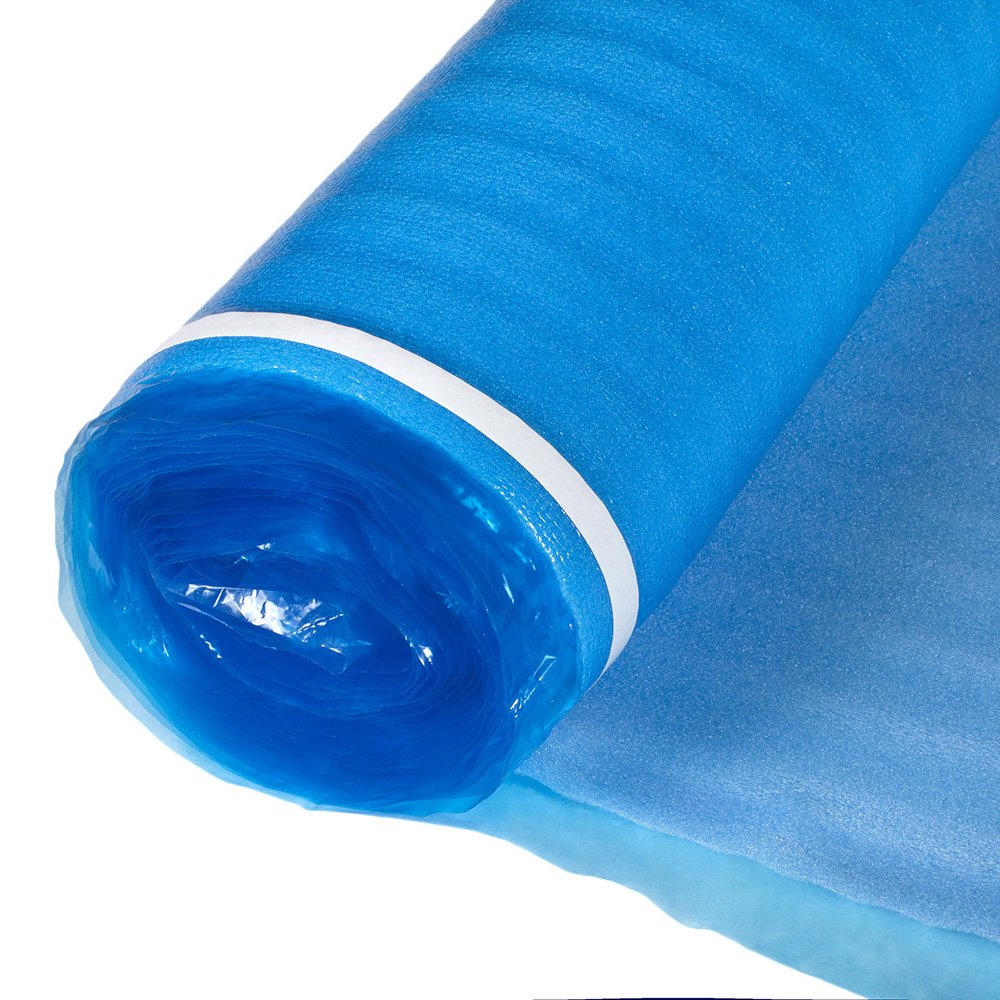 Protect and improve the performance of your floors with the 3-in-1 Blue Vapor Barrier Underlayment, now offered in a convenient 5-roll bundle that covers 500 sq.ft. Designed for universal use, this underlayment is compatible with all subfloor types, including concrete, and is suitable for various flooring such as laminates, engineered hardwood, bamboo, and more. Key Features: 500 sq.ft Coverage: Each roll covers 100 sq.ft, making this bundle ideal for medium-sized spaces or room renovations. Moisture Protection: Integrated vapor barrier and overlap system provide excellent moisture resistance, perfect for use on concrete subfloors or areas with crawl spaces. Quick & Easy Installation: This comes with adhesive tape attached to each roll for a seamless, fast installation. Comfort & Sound Insulation: Provides a cushioned underlayer that reduces noise and adds insulation, keeping your floors comfortable and warm. Versatile Compatibility: Works with a variety of flooring types, including hardwood, laminates, bamboo, and more. This 5-roll bundle is perfect for residential or commercial projects where moisture control and comfort are essential. Packaging: Our flooring underlayment bundles are shipped in eco-friendly, recyclable bags, reinforcing our commitment to sustainability and reducing environmental impact.