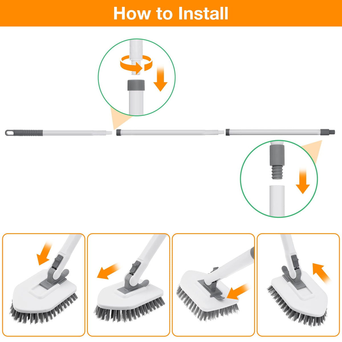 Q: Is the handle comfortable to use for extended cleaning sessions?A: Absolutely! The handle of the tub tile scrubber is designed for comfort, made from soft EVA material with a thickened iron pole. It features an anti-slip design and can be assembled in different lengths, allowing for easy use whether you prefer a long handle or handheld operation.