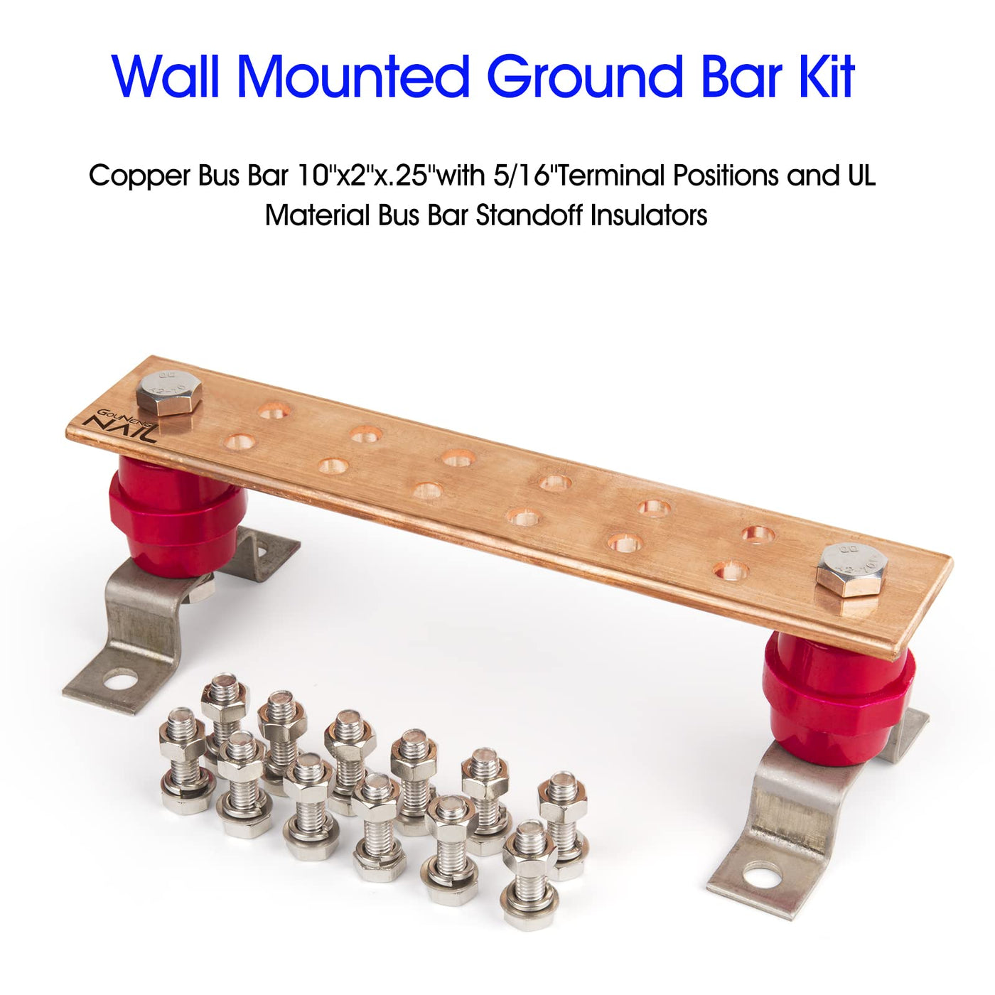 GOUNENGNAIL-Wall Mounted Copper Ground Bar Kit .25' x 2' x 10' Bus Bar 5/16'' x 12 Terminal Positions with UL Recognized SM40 Insulators Rated Uimp up to 7.2KV (4pack)