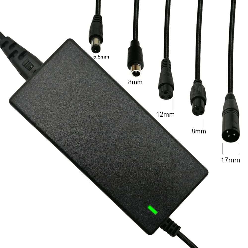 42V 2A Charger 5 Plugs Universal for 36V Lithium Battery, Pack DC 5.5 * 2.1 with 8mm 3 Prong Connector /12mm 3 Prong Connector /