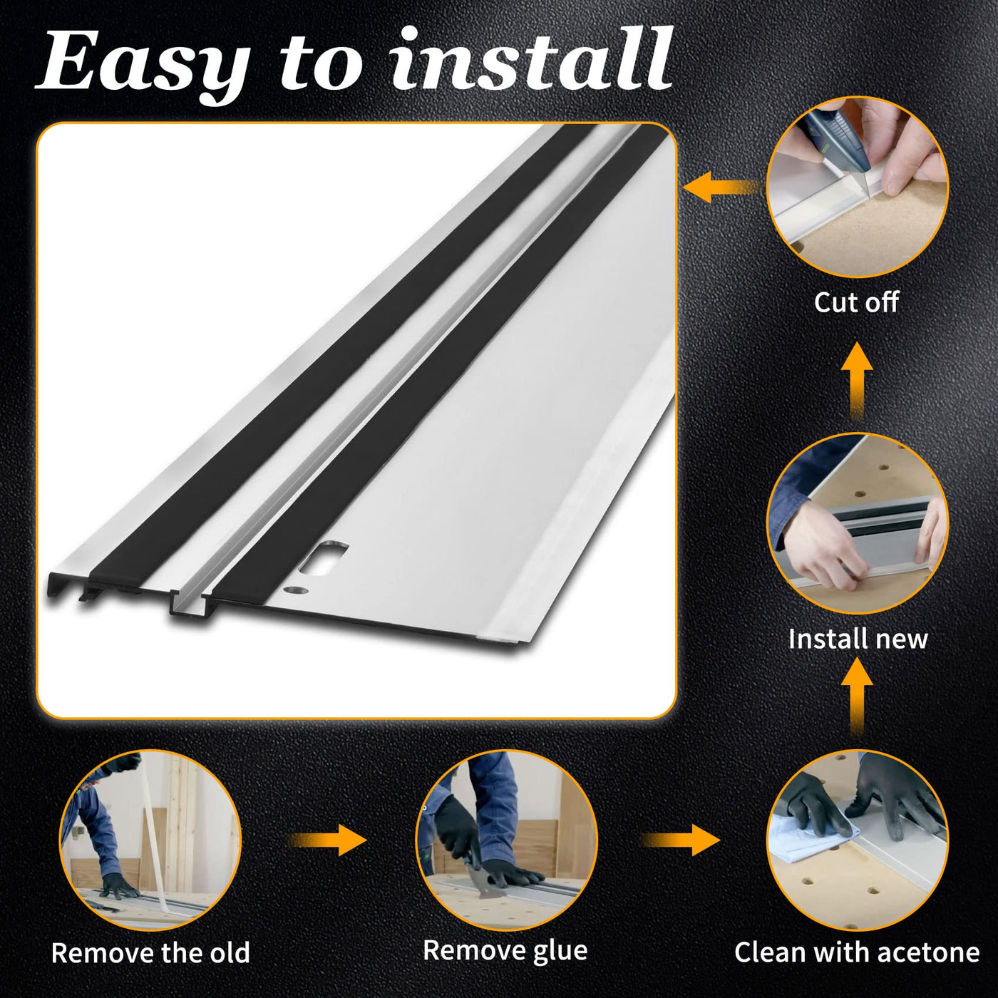 Q: What materials are used in the construction of the splinter guard?A: This replacement strip is made from high-quality soft rubber that features strong adhesive properties, ensuring it adheres securely to the guide rail and remains in place during use.