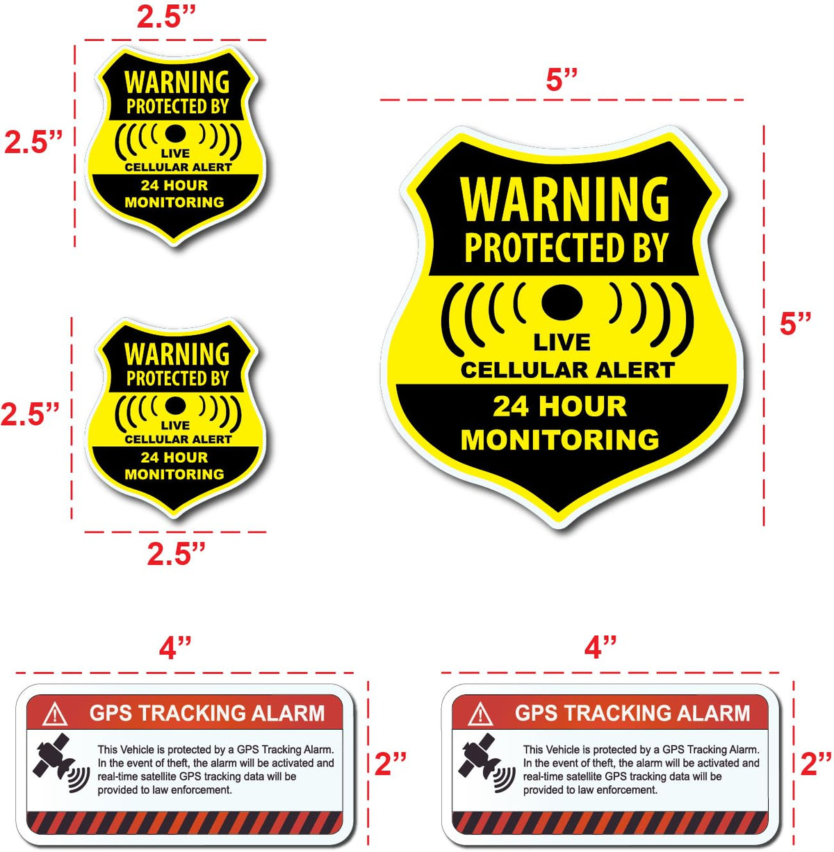 (5 Pack) Combination Pack Of 24 Hour Monitoring - This Vehicle Protected By Gps Tracking Warning Signs - Decal Self Adhesive Sticker Vinyl Decal — Uv Resistent