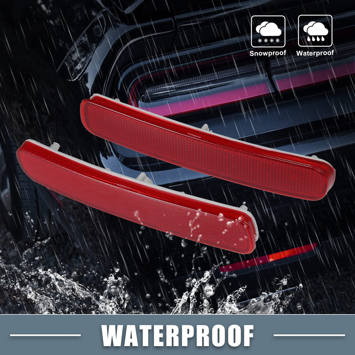 Q: Are these reflectors waterproof and resistant to extreme weather?A: Yes, the ABSOPRO Rear Bumper Reflector Lights are waterproof, dustproof, and built to endure extreme weather conditions. They prevent condensation inside the lens, ensuring visibility and functionality even after heavy rain or car washes.