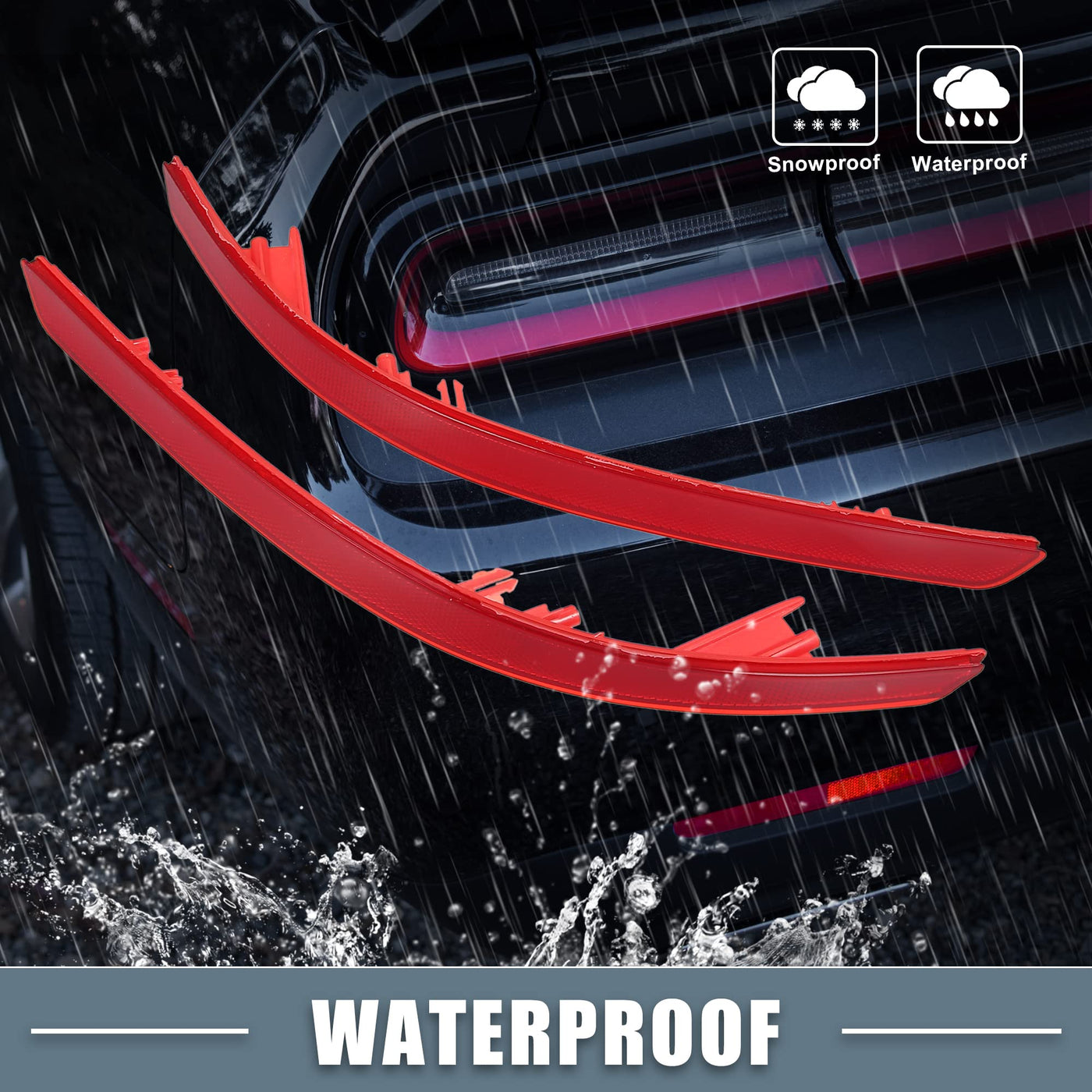 Features:This rear side marker reflector is made to direct replace the old or broken rear bumper reflector lamp on specific vehicle.The side marker indicator with strong penetrating power, it can be used in places such as night, rain, detours, roads and tunnels.Made of durable plastic with stable structure, not easy cracking with long service life. Thickened shell, waterproof, dustproof and anti collision.Easy installation, just plug the reflector on the bumper.OE Number: 92405-2T000, 92406-2T000Details:Material: ABSColor: RedSize: 43x2.7x4.5cm / 16.93''x1.06''x1.77''(L*W*H)Placement on Vehicle: Rear Left Right SideFitment:for Kia Optima Magentis K5 2011-2013Please Note:Please ensure this part is suitable for your vehicle before purchasing.Please allow a 0-3mm difference due to manual measurement.This is a non-OEM product, accessory ONLY!Package List:1 Pair Rear Bumper Reflector Light