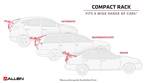 Amazon.comNeed an on-the-spot two-bike carrier but don't want to carry a full-sized rack around? Turn to the Allen MT-2 ultra-compact two-bike carrier, which folds up small and fits in almost any bag, including your backpack. Ideal for traveling, commuting, and other occasions when a portable bike rack might come in handy, the rack is small yet secure, with three padded legs that rest against your vehicle and three adjustable straps that secure to your car's hatchback or trunk gaps. Just as importantly, the rack holds your bikes in a safe position thanks to the tie-downs and padding, which combine to keep your bikes from rocking or making contact with your vehicle. And when you're done using the rack, simply fold it up and store it inside the included carrying bag. The two-bike rack--which sports a gray powder-coated finish--is designed to fit sedans, hatchbacks, minivans, and SUVs.About Allen Bike Racks Started out of founder Dick Allen's garage in 1967, Allen Sports is committed to producing the highest-quality, easiest-to-use bike, parking, and storage racks on the market. Dick Allen, a onetime aerospace engineer, opened Allen Sports after building a prototype bike carrier in his Lincoln, Massachusetts, shop in his free time. The bike enthusiast tested the trunk-mounted carrier--made of electrical conduit, metal strapping, and fire hose casings (for padding)--on weekend excursions. Shortly afterward, Allen took his design to consumers, moving from local to national sales by 1971. Today, the company owns more than three dozen patents and operates three warehouses nationally, two factories abroad, and sells products in more than a dozen countries around the world.Product DescriptionNeed an on the spot two bike carrier but don't want to carry a full sized rack around? Turn to the Allen MT 2 ultra-compact two bike carrier, which folds up small and fits in almost any bag, including your backpack. Ideal for traveling, commuting, and other occasions when a portable bike rack might come in handy, the rack is small yet secure, with three padded legs that rest against your vehicle and three adjustable straps that secure to your car's hatchback or trunk gaps. Just as importantly, the rack holds your bikes in a safe position thanks to the tie downs and padding, which combine to keep your bikes from rocking or making contact with your vehicle. And when you're done using the rack, simply fold it up and store it inside the included carrying bag. The two bike rack which sports a gray powder coated finish is designed to fit sedans, hatchbacks, minivans, and SUVs.