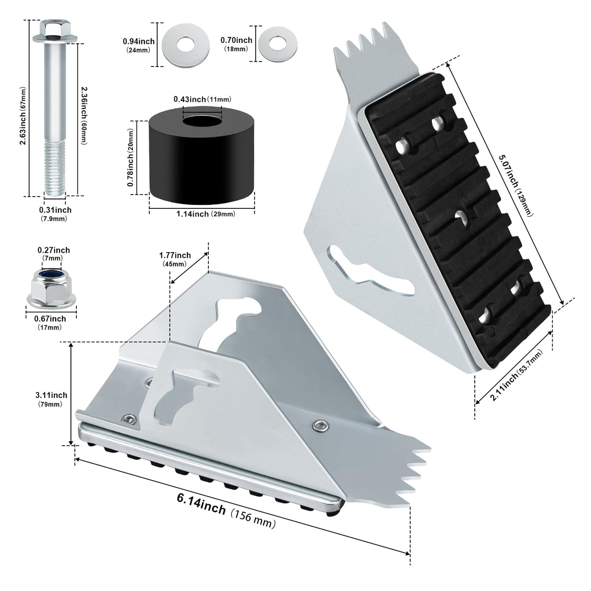 Q: What materials are used in the construction of the shoe kit?A: The shoe kit is crafted from durable aircraft-grade aluminum, ensuring exceptional strength and longevity even under heavy use.