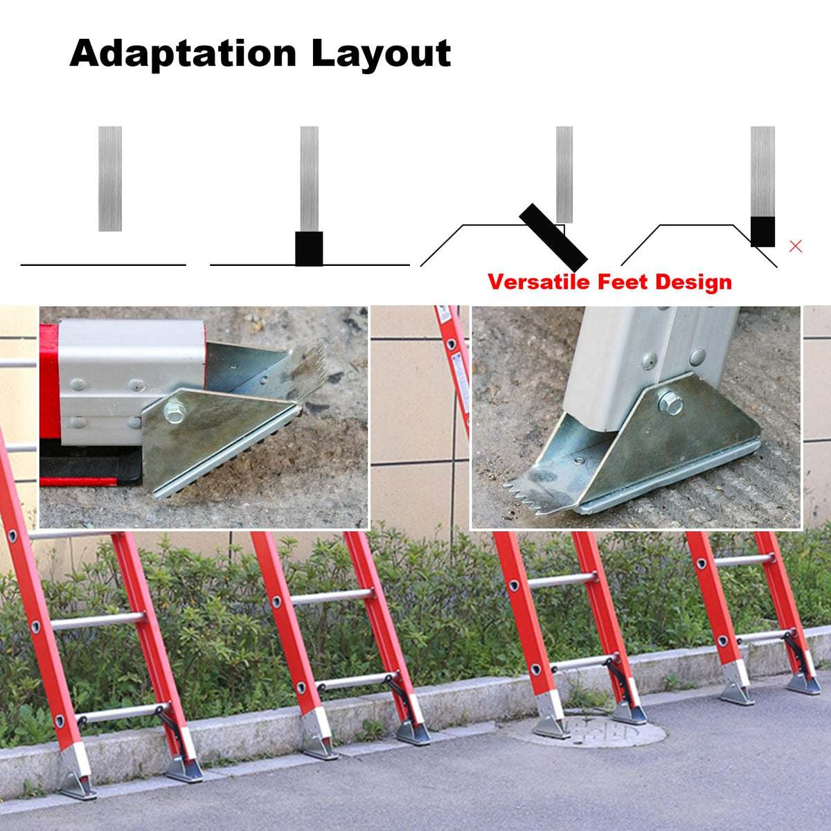 Q: Can I use these replacement feet on soft terrains like mud?A: Yes, the front pick teeth of the shoe kit are specifically designed to dig into soft terrains such as mud, providing firm support for your ladder.