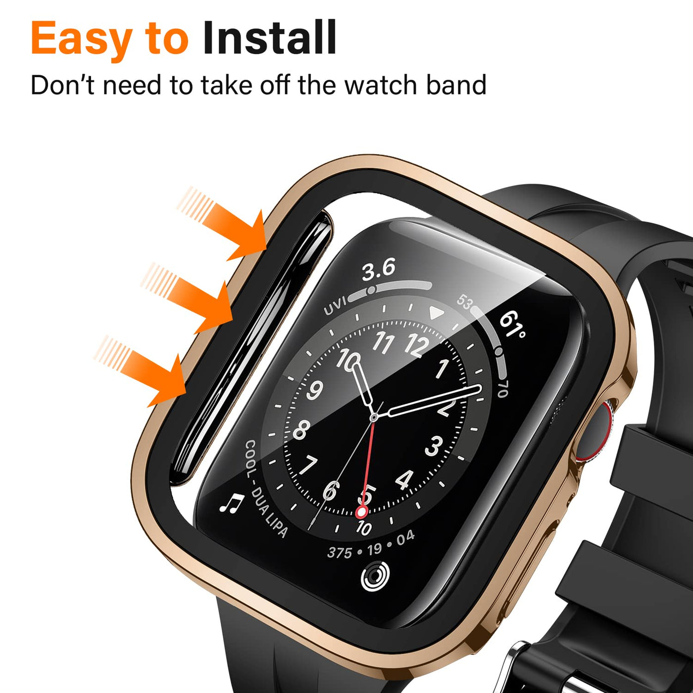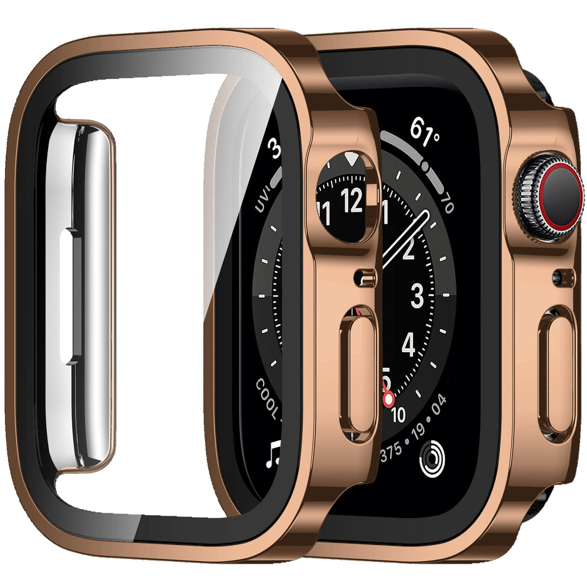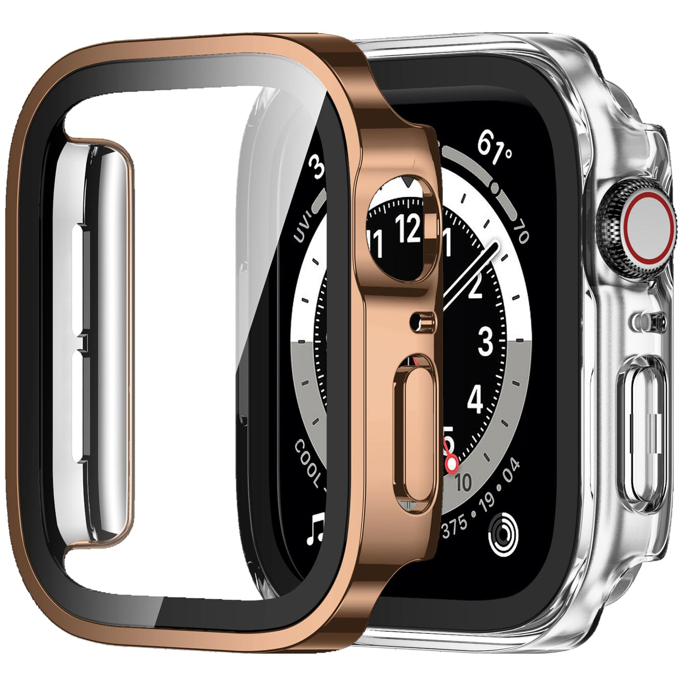 ?Compatible Model?Amizee Hard PC Case Compatible with Apple Watch Series 6/5/4/SE 44mm. Please check your smartwatch model size before ordering. | ?Overall Protection?Durable hard PC bumper with built-in screen protector, completely covers the watch screen and curved edges, all-around protect your watch against scratches and damage. Ultra-thin three-dimensional right-angle edge design is more slim. | ?Easy to Install?Easy to install for its snap-on design; Charge directly, no need to frequently remove the protective case; Precise cutting ensures a perfect fit, easy access to all controls, buttons, sensors and Apple Watch features. | ?High Touch Sensitivity?99.9% HD clarity glass, provides an original vision and touching experience; Fingers glide across the protector as freely as your original glass screen. | ?What you get? 1 x Rose Gold rugged case, 1 x Clear rugged case; We provide 1 year warranty, please feel free to contact us for any issues, a satisfied solution is promised forever.