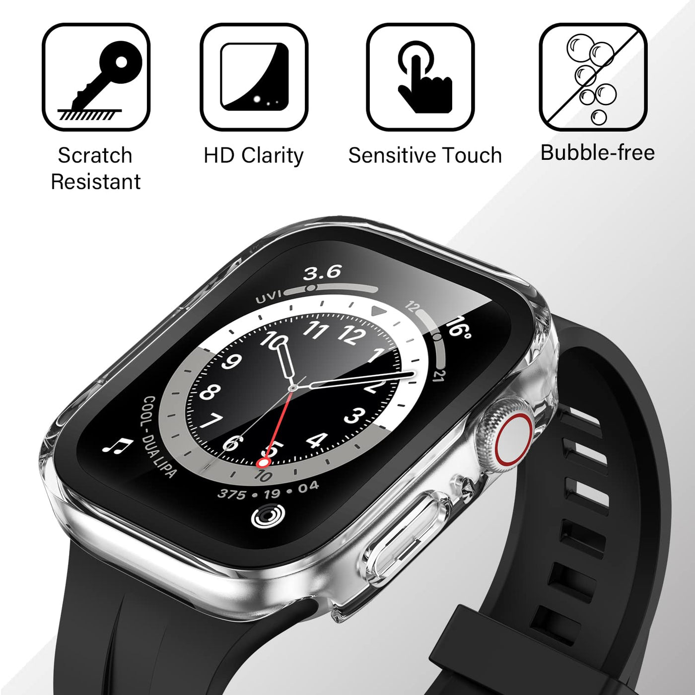 Q: How does the built-in screen protector work?A: The built-in screen protector offers 99.9% HD clarity and is designed to shield the watch screen and curved edges from scratches and damage while maintaining high touch sensitivity for an optimal user experience.
