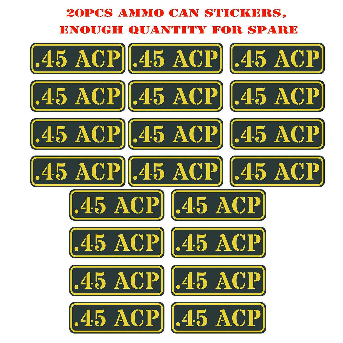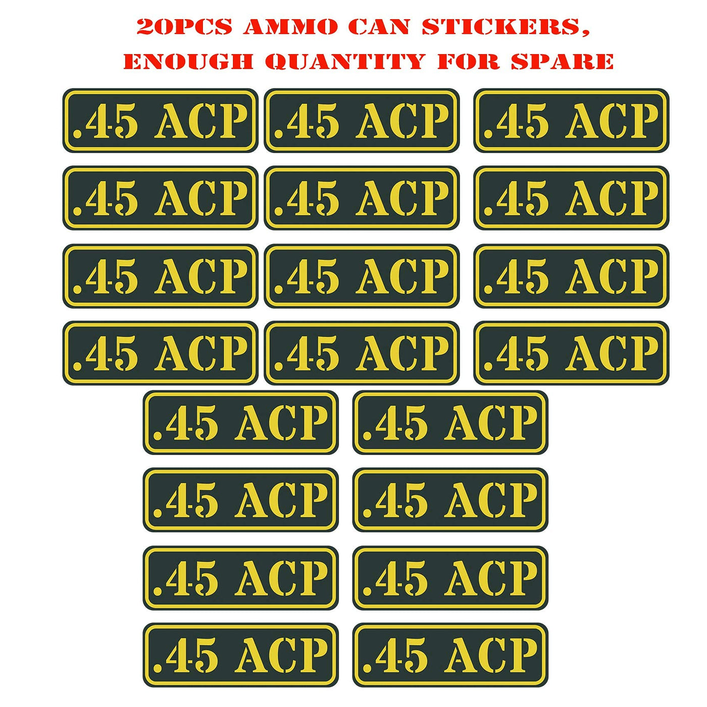 Aolamegs Ammo Can Vinyl Sticker Set Decal Label 9Mm 5.56 7.62 12Ga .22 .223 .308 .300 .380 .45 (20 Pack/.45Acp)