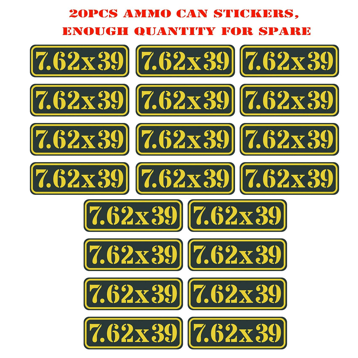 Aolamegs Ammo Can Vinyl Sticker Set Decal Label 9Mm 5.56 7.62 12Ga .22 .223 .308 .300 .380 .45 (20 Pack/7.62*39)