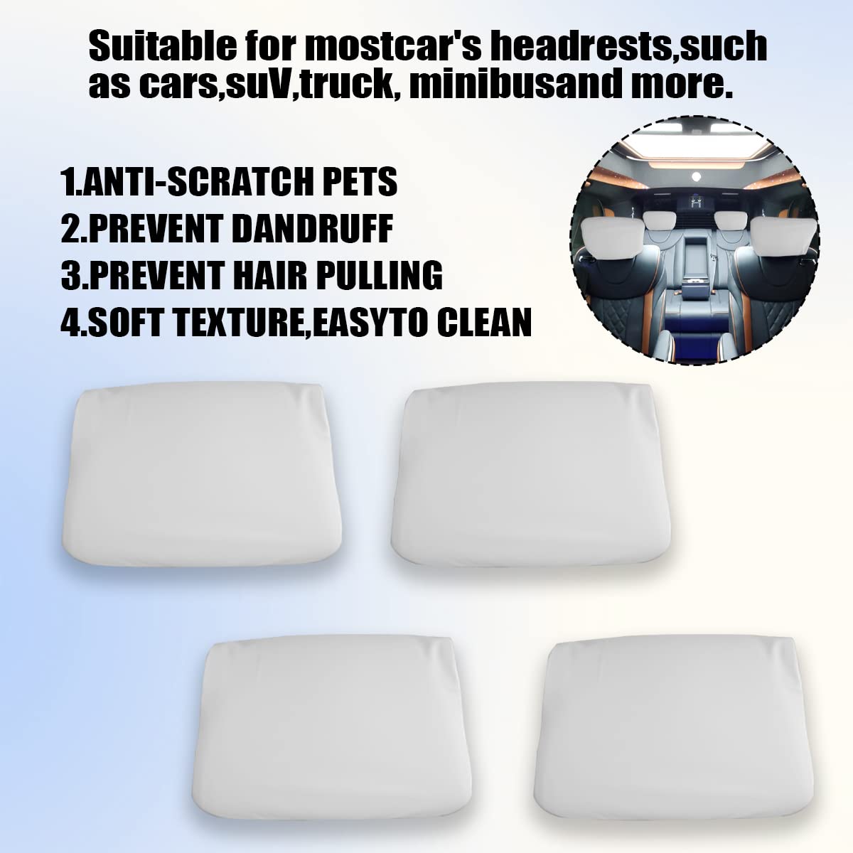 Aukepo 4Pcs Car Headrest Covers, Soft Waterproof Car Seat Head Rest Protector, Universal Automotive Interior Accessories For Van, Suv, Truck, All Car Models (White)