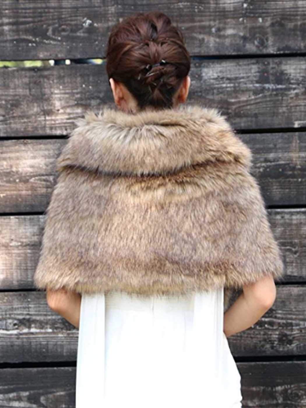 Q: What occasions is the Aukmla Women's Brown Faux Fur Shawl suitable for?A: The Aukmla Women's Brown Faux Fur Shawl is ideal for weddings, casual outings, parties, and evening events, making it a versatile accessory for various occasions.